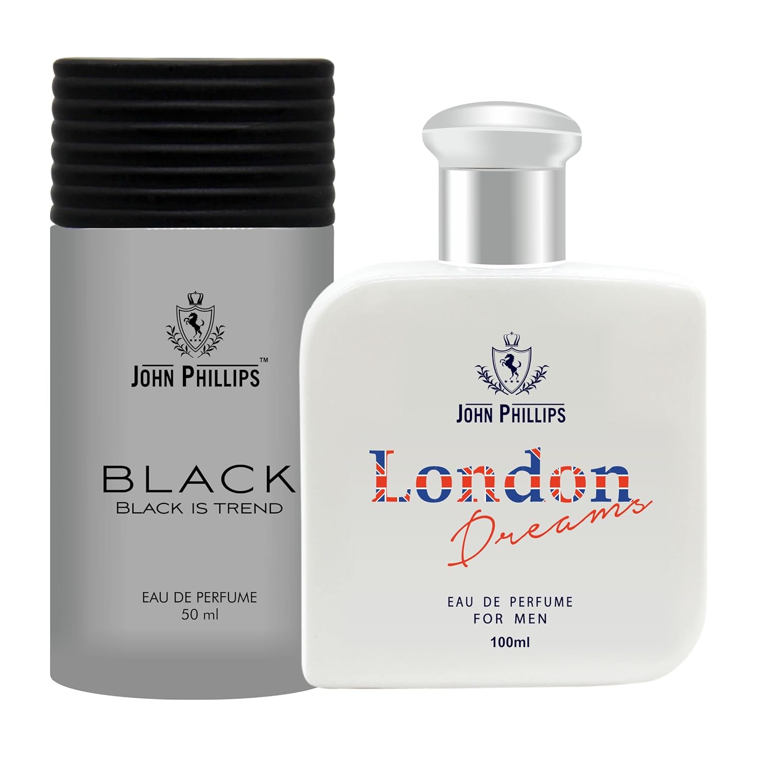 John Phillips Black 50ml 1.6 Fl.oz. & London Dreams 100ml 3.4 Fl.oz. Eau De Parfum | Long Lasting Fragrance For Men & Women