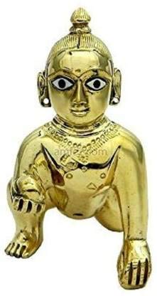 Laddu Gopal Brass Idol, Bal Gopal, Thakur Ji Statue, Gold, Brass, Baby Krishna, Perfect Decorative Showpiece Idol, Gold Handmade Statue, Occasion, For Home, Office, Desk, Gifts Etc