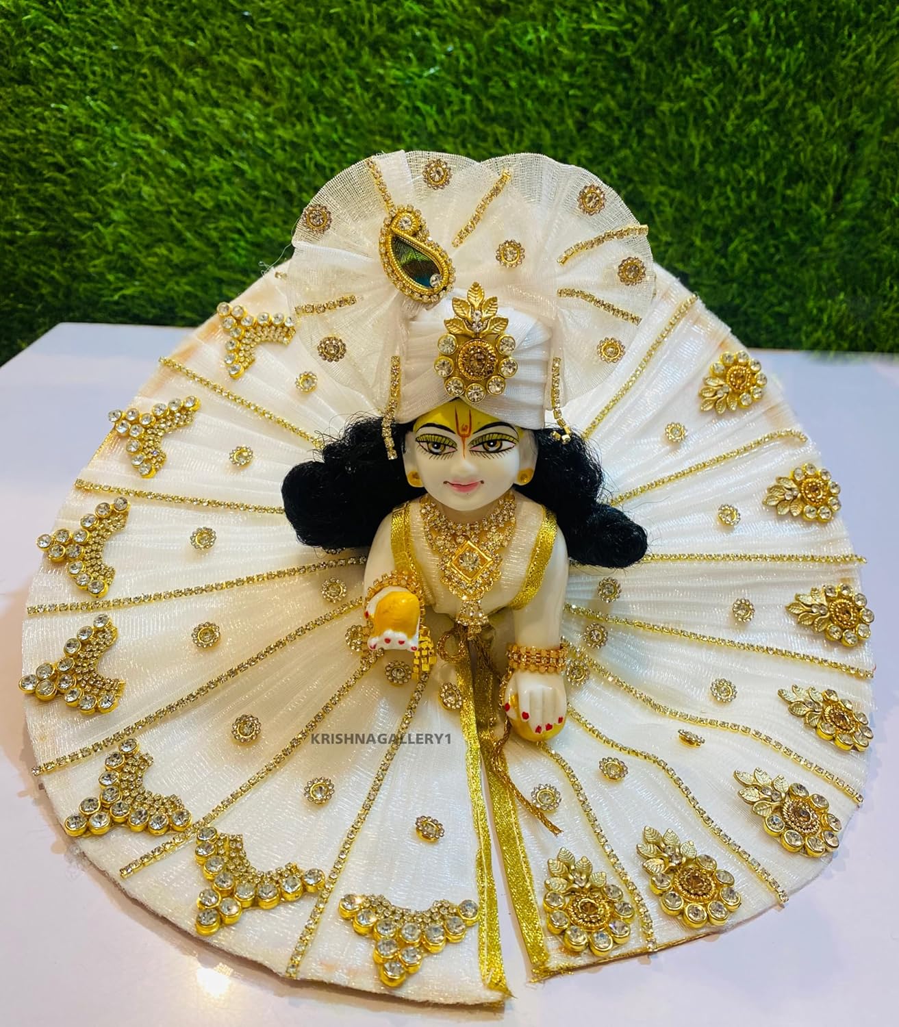 Laddu Gopal Kanha Ji Statue, Bal Gopal Ji Murti, Marble, White, Idol - Size No.6, Full Ready Shringar, Heavy Fancy Dress Combo Set - For Gifted Piece Home, Temple, Pooja, Office & Etc