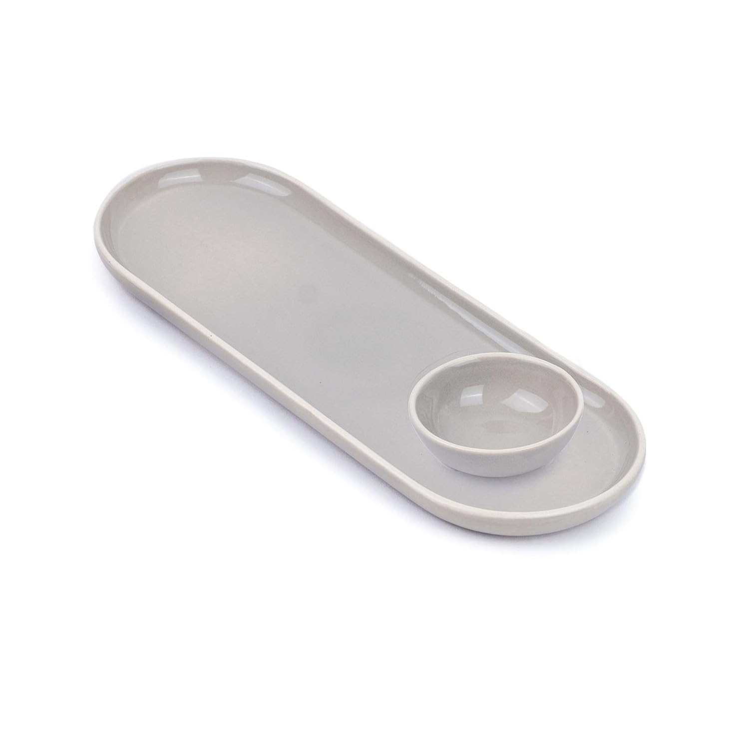 Colour - Grey Platter with Dip Bowl | Finish - Glossy | Elegant, Modern Design