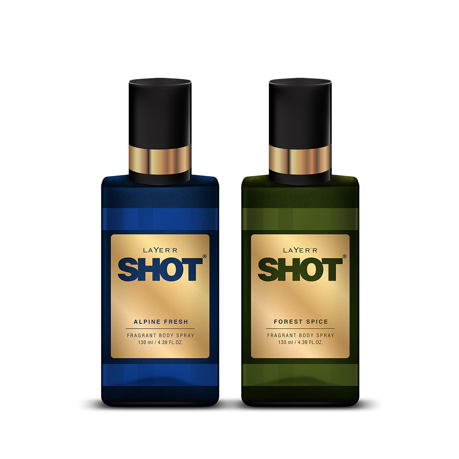 Layer'r Shot Alpine Fresh And Forest Spice Each 130ml 4.39 Fl.oz. | Long Lasting Body Spray |  Pack Of 2