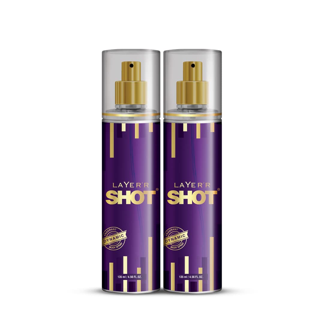 Layer'r Shot Combo Of 2 Dynamic Fragrant Body Spray For Men | Long Lasting Fragrance 135ml 4.56 Fl.oz. Each