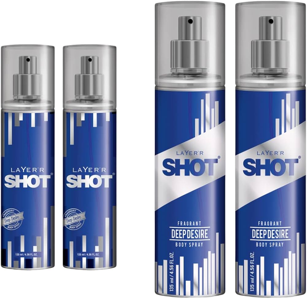 Layer'r Shot Deep Desire Fragrant Body Spray 135ml Each 4.56 Fl.oz. Combo Of 2 | Long Lasting Fragrance For Men