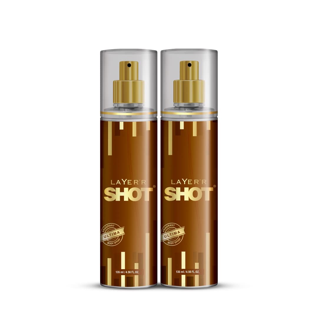 Layer'r Shot Ultima Fragrant Body Spray For Men | Long Lasting Fragrance 135ml 4.56 Fl.oz. Each Pack Of 2