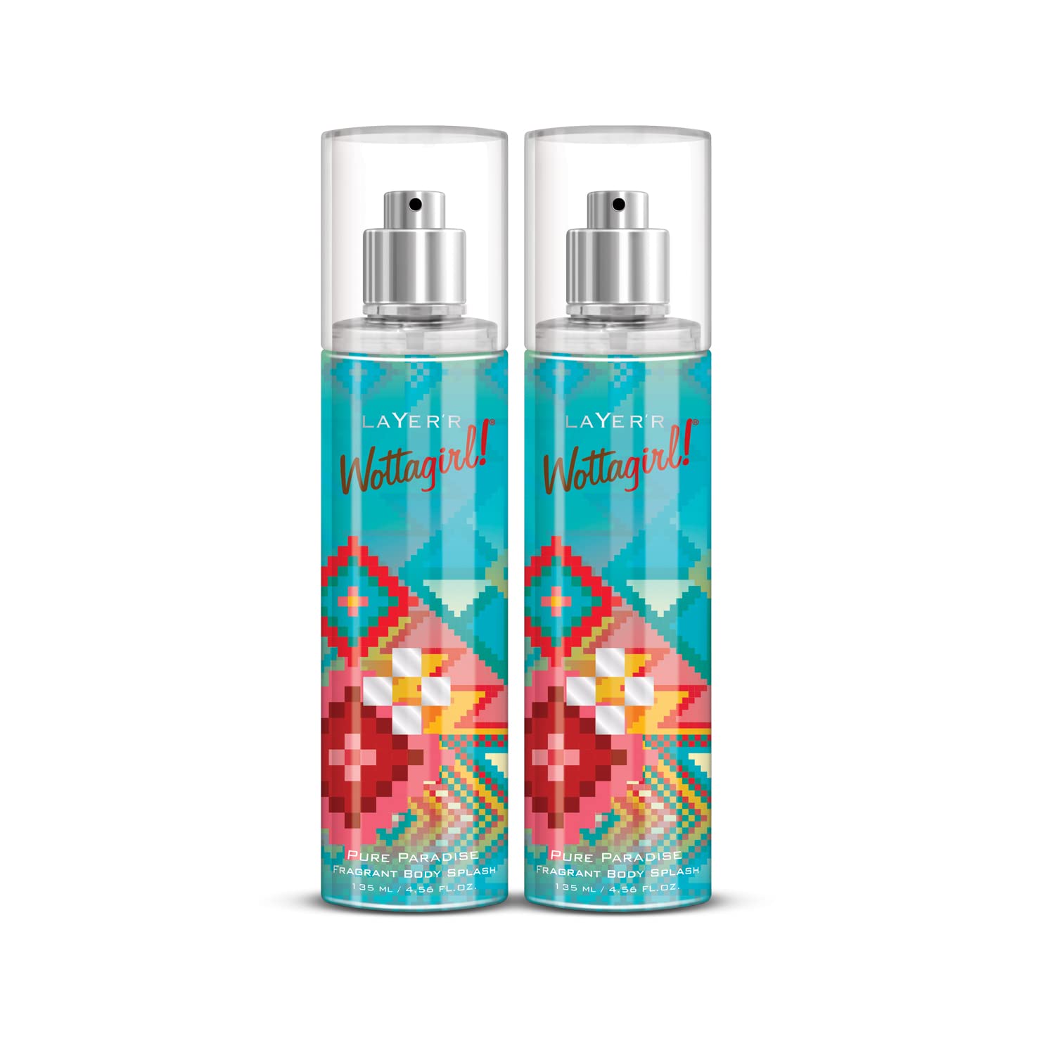 Layer'r Wottagirl Pure Paradise Fragrant Body Splash  | Long Lasting Fragrance 135ml Each 4.56 Fl.oz. Combo Of 2 | Best Birthday Gift For Girlfriend