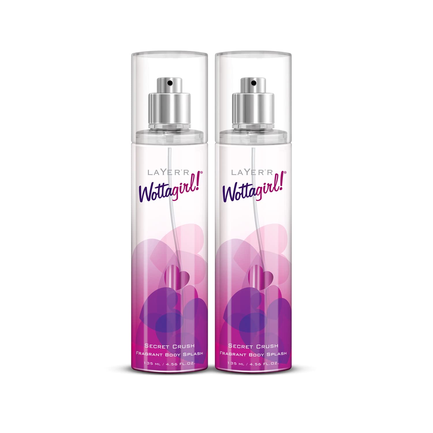 Layer'r Wottagirl Secret Crush Fragrant Body Splash For Women | Long Lasting Fragrance 135ml Each 4.56 Fl.oz. Combo Of 2