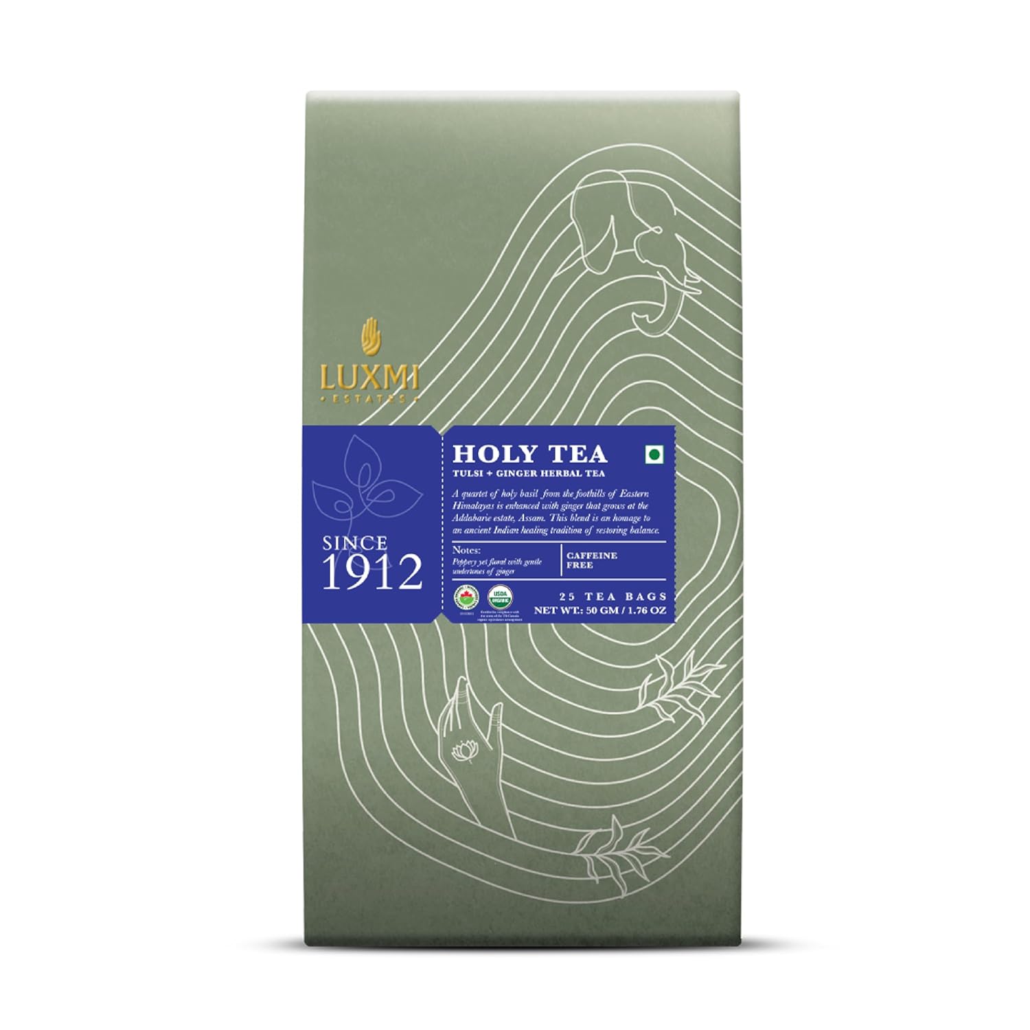 Luxmi Estates Holy Tea is a premium blend of Certified Organic Tulsi Tea, carefully crafted to provide a calming and soothing herbal tea experience.Indulge in the tranquil and calming experience of Luxmi Estates Holy Tea, enriched with Certified Organic Tulsi leaves.