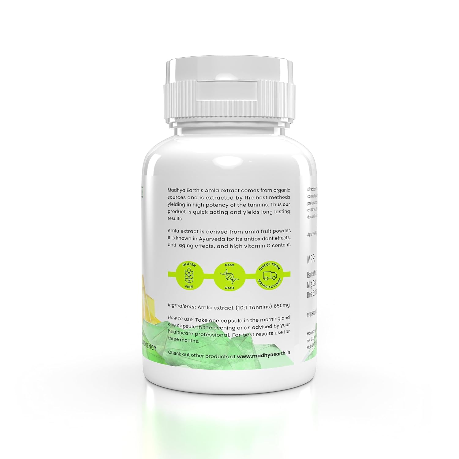 Madhya Earth Amla Extract Veg Capsules 10:1 Tannins Immunity Booster, Natural Vitamin C, Excellent For Hair, Skin & Nails Health 650mg 100% Pure Extract | 60 Veg Capsules 100gm 0.2lbs