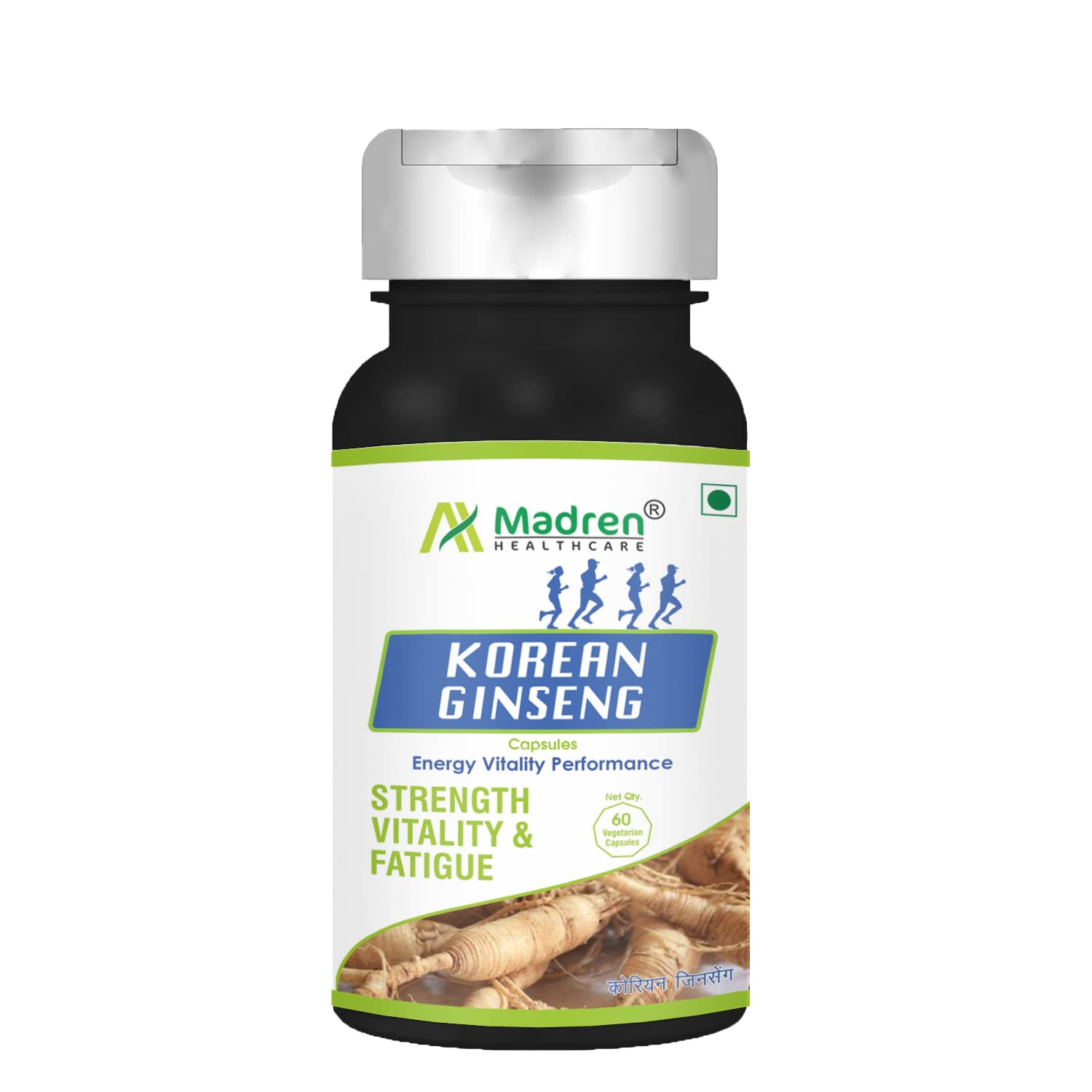 Madren Healthcare Korean Red Ginseng Capsules Strength, Energy, Vitality, Performance & Fatigue | 60 Veg Capsules 100gm 0.2lbs