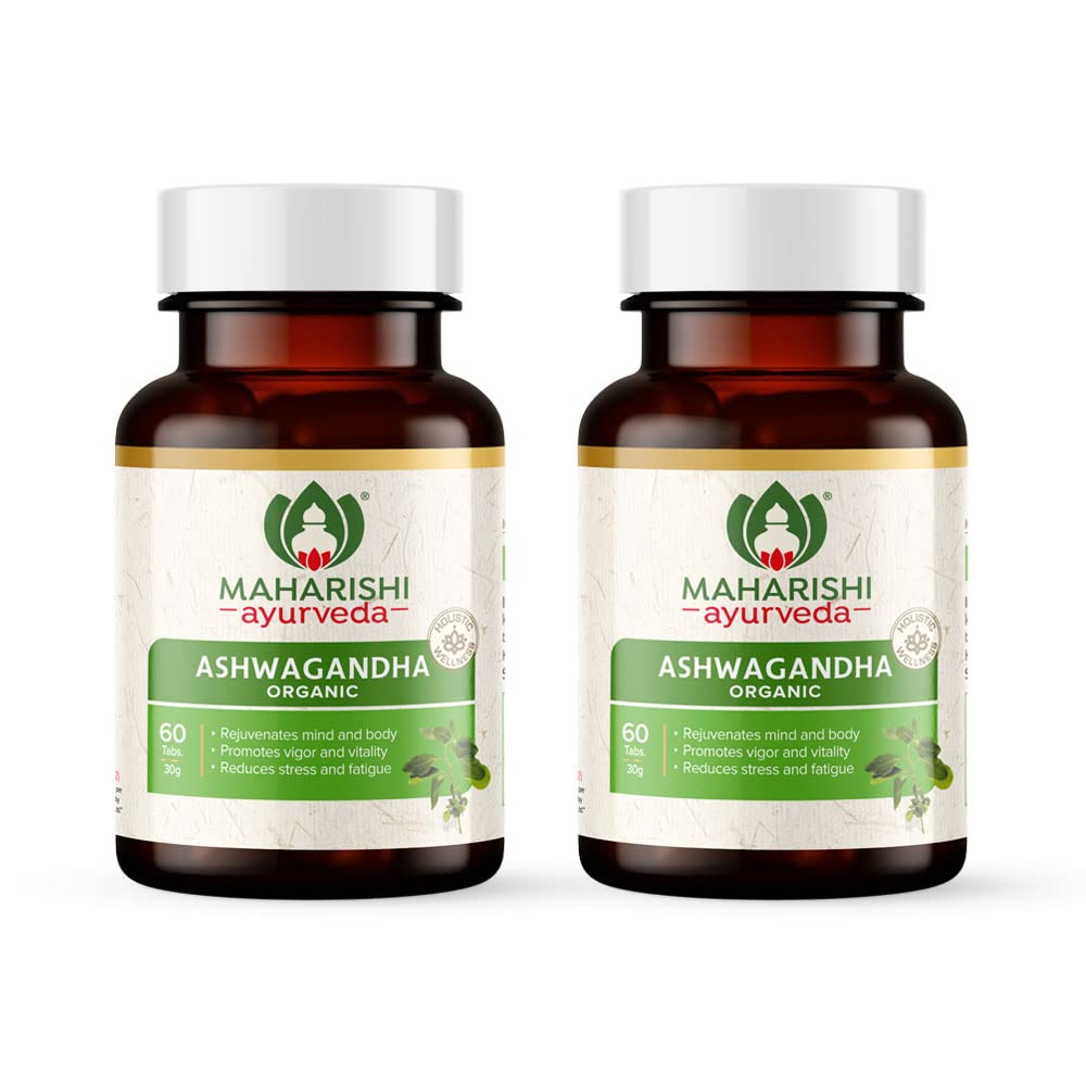 Maharishi Ayurveda Organic Ashwagandha 100% Organic General Wellness Tablets Rejuvenates Mind & Body Made With Pure Herbs | 60 Tablets 100gm 0.2lbs Each Pack Of 2