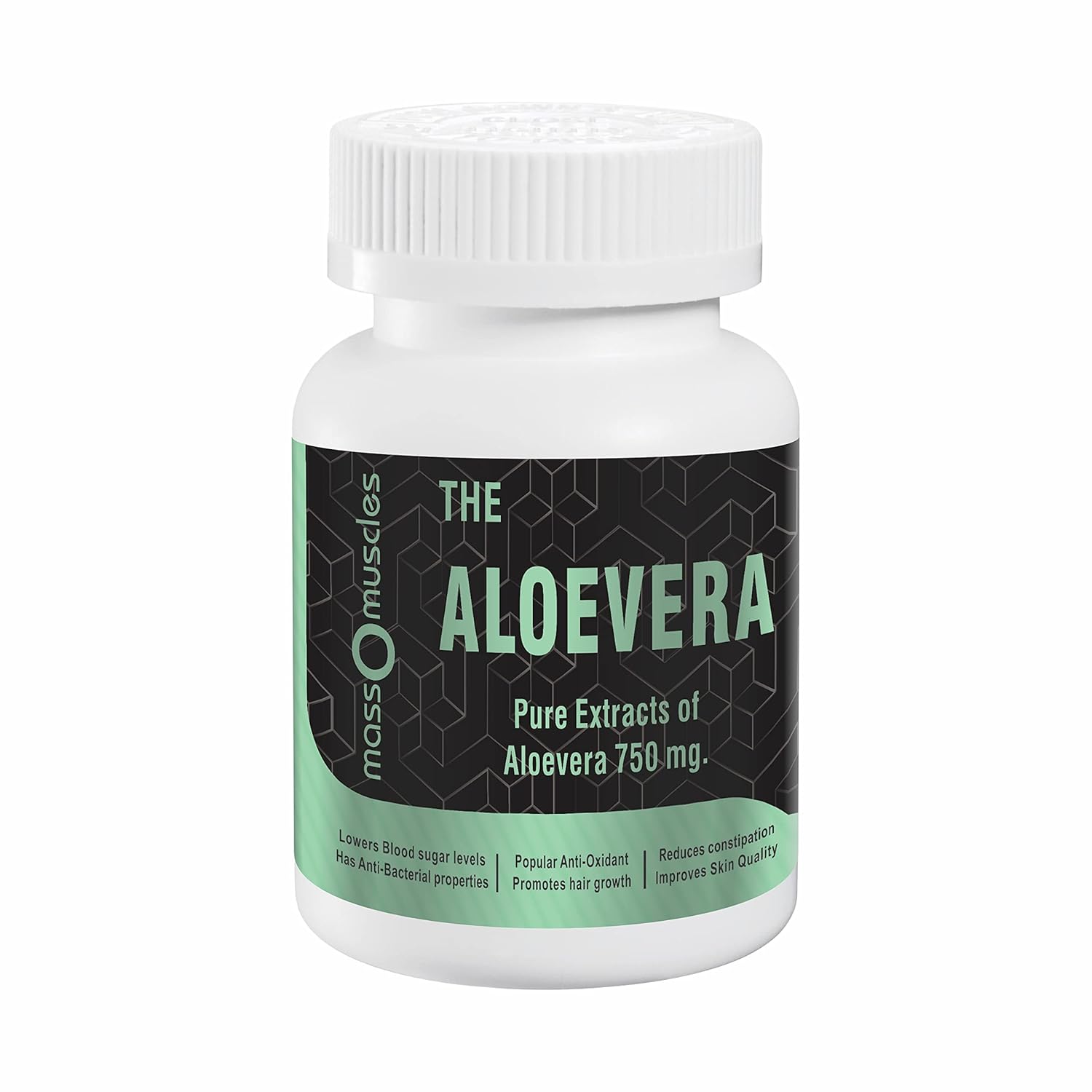 Massomuscles Pure Extract Of Aloe Vera 750mg Ayurvedic Herbal Capsules Helps In Hair & Skin Properties | 60 Capsules, 100gm 0.2lbs