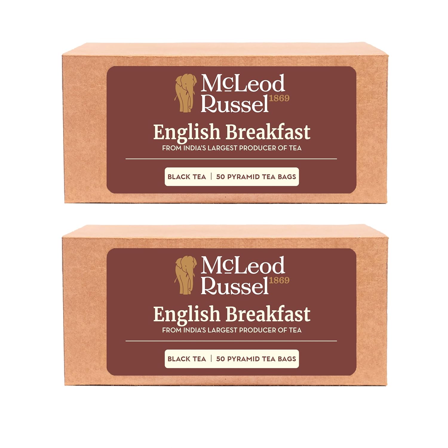 McLeod Russel 1869 English Breakfast Black Tea - Pack Of 2 X 100gm, 3.5 Ounce Each, 100 Pyramid Tea Bags | Strong & Robust Blend Daily Black Tea - Loose Leaf Black Orthodox | Low Caffeine