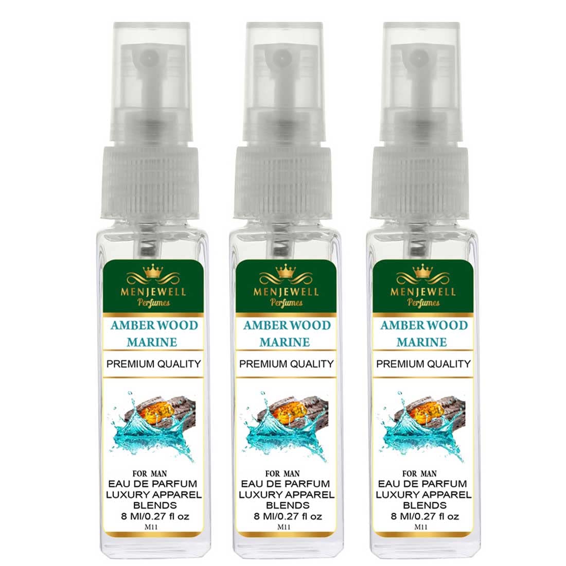 Set Of 3 Amber Wood Marine Eau De Parfum 24ml