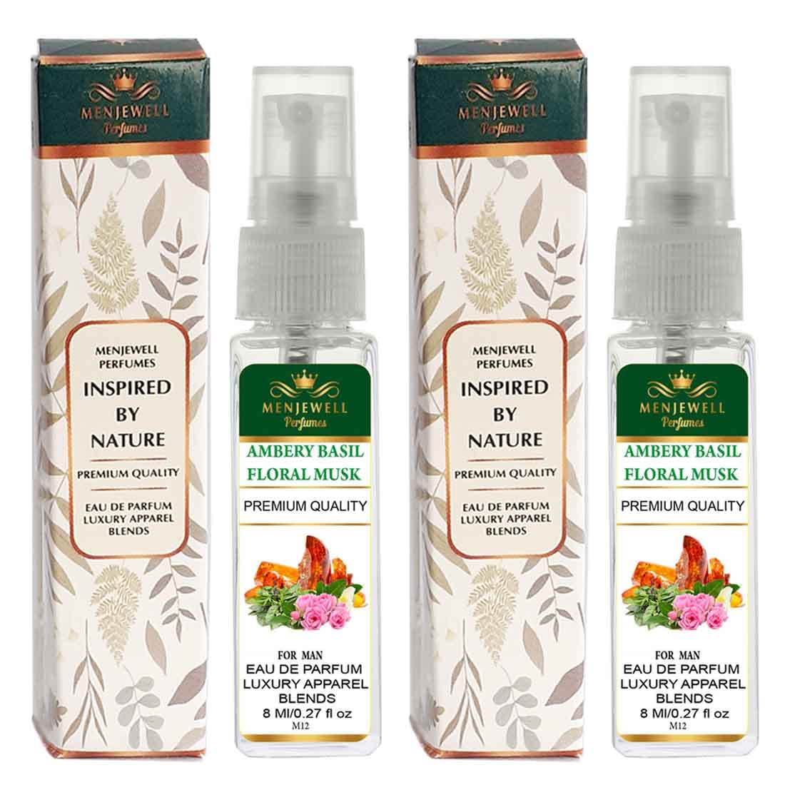 Menjewell Ambery Basil Floral Musk Eau De Parfum For Man 8ml 0.27 Fl.oz. Each Pack Of 2 | Luxury Apparel Parfum