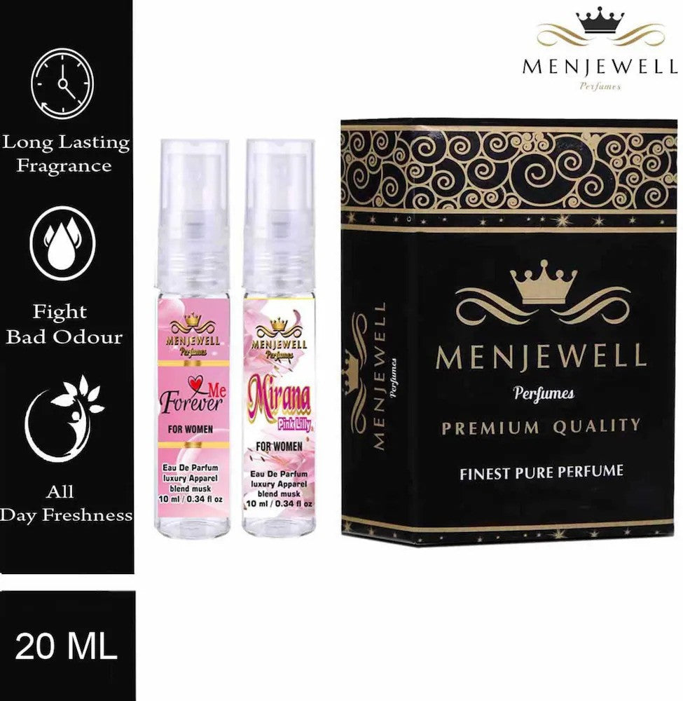 Menjewell Love Me Forever Floral + Mirana Pink Lily Eau De Parfum 10ml 0.3 Fl.oz. Each Pack Of 2 | Women Fragrance | Pocket Perfume Combo