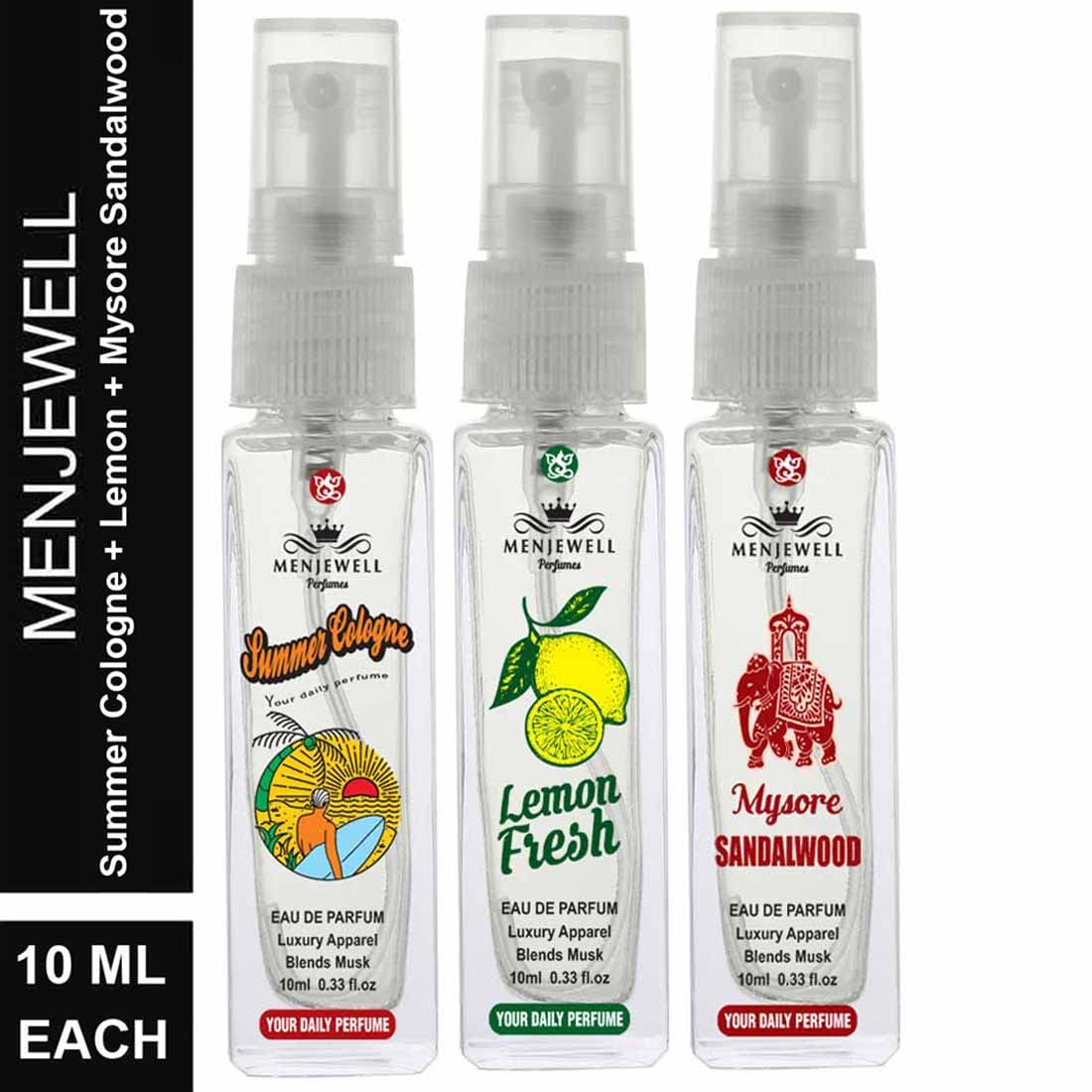 Menjewell Women Pack of 3 Summer, Fresh Lemon, Mysore Sandalwood Cologne- 30 ml