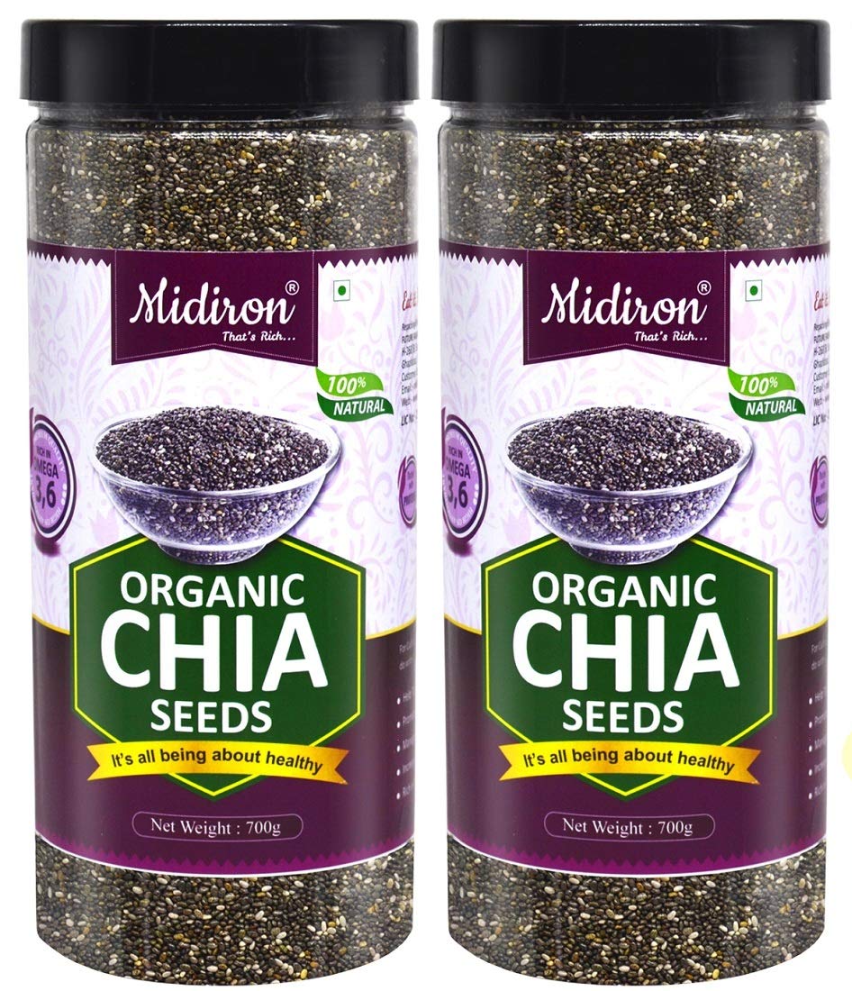 Midiron Raw Chia Seed For Weight Management Chia Whole Seeds For Weight Loss With Omega 3, Protein & Fiber, Natural Chia Seed Edible, Diet Snacks, Immunity Booster | 700gm 1.5lbs Each Pack Of 2