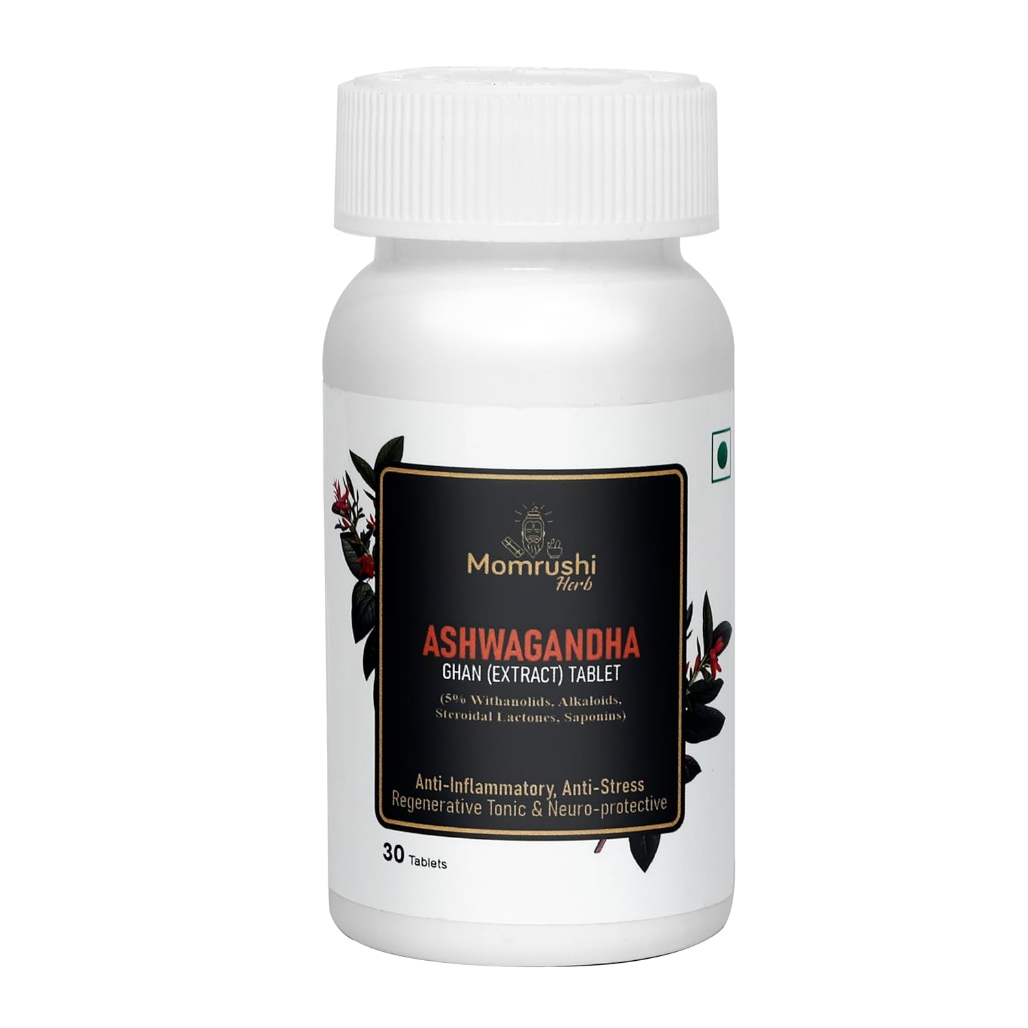 Momrushi Ashwagandha Tablets Roots Extract Original Stress & Anxiety Relief General Wellness Improves Sleep, Increases Immunity, Stamina Ayurvedic For Women & Men | 30 Tablets 50gm 0.1lbs