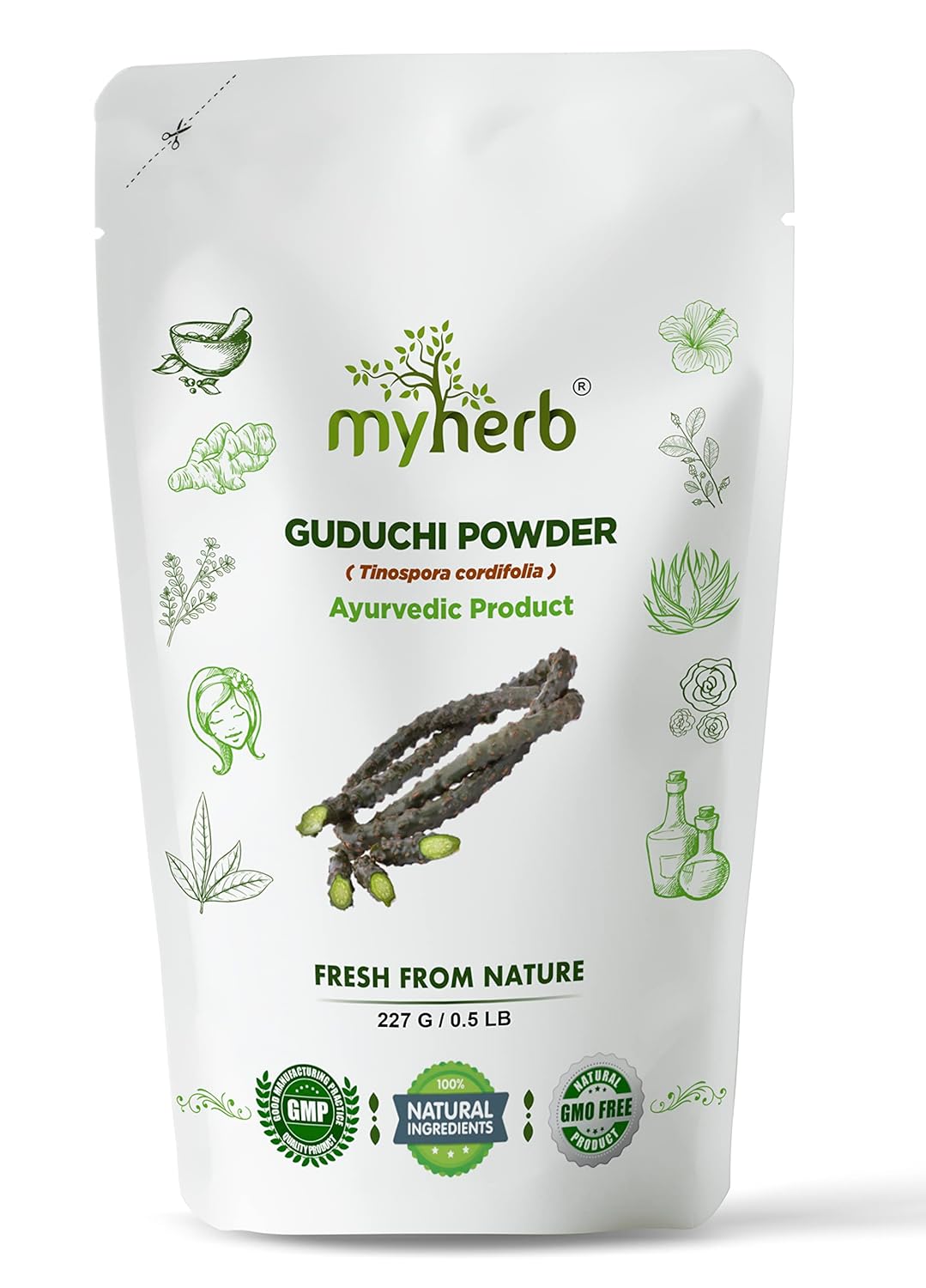 Myherb 100% Natural Organic Guduchi Powder, Giloy Powder Tinospora Cordifolia Ayurvedic Powder, Help To Increase Immunity For Men & Women | 227gm 0.5lbs
