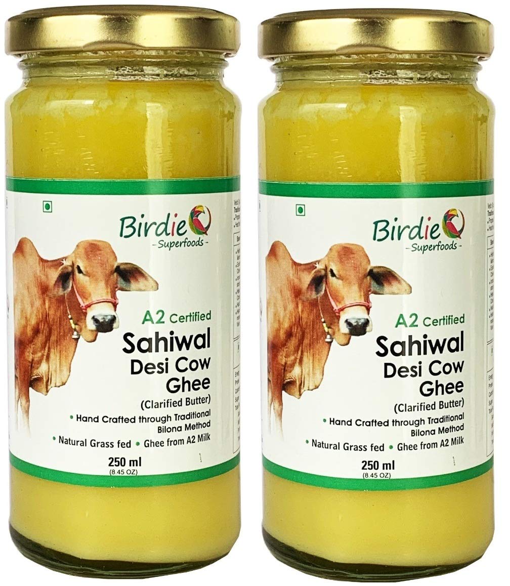 Natural A2 Certified Sahiwal Desi Cow Ghee By Birdie Superfoods | Rich In Nutrients Flavor Healthy Desi Ghee | 500ml (250ml * 2) 16.9 Ounce | Glass Bottle