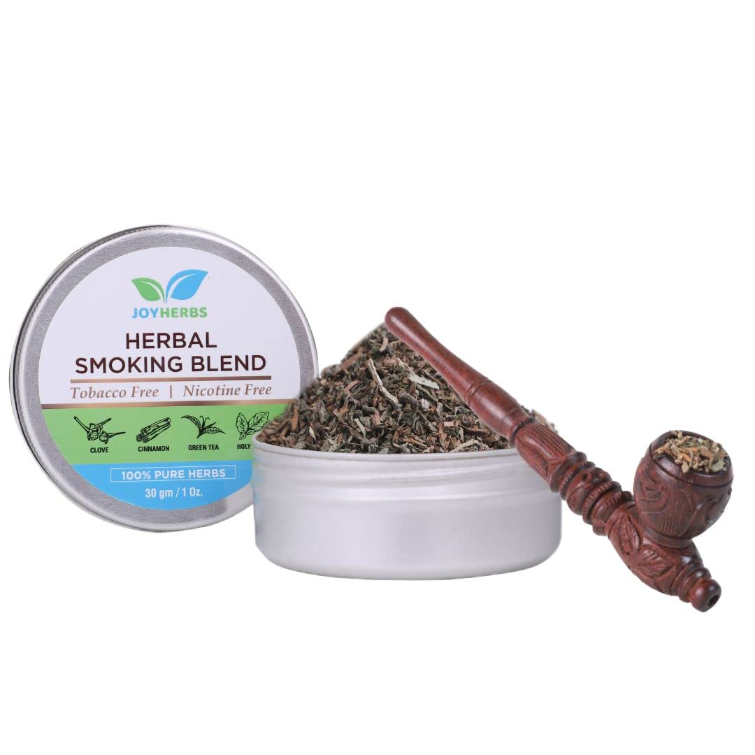 Natural & Ayurvedic Herbal Smoking Blend 1 Pack 1 Oz/ 30g Can With Wooden Antique Pipe | Helps To Quit Smoking - Tobacco-Free & Nicotine-Free Smoking Mixture