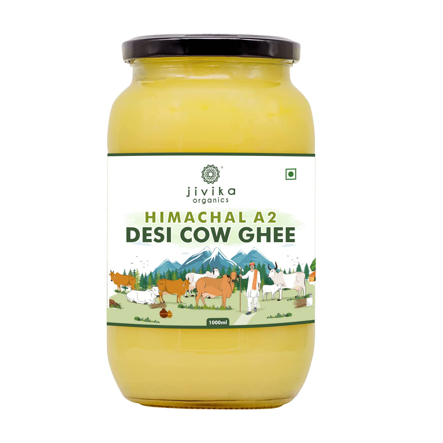 Natural Himachal A2 Desi Cow By Jivika Naturals | Good Source Of Vitamin A & Healthy Desi Ghee Perfect For Boost Energy | (1 Litre) 33.8 Ounce | Jar Pack