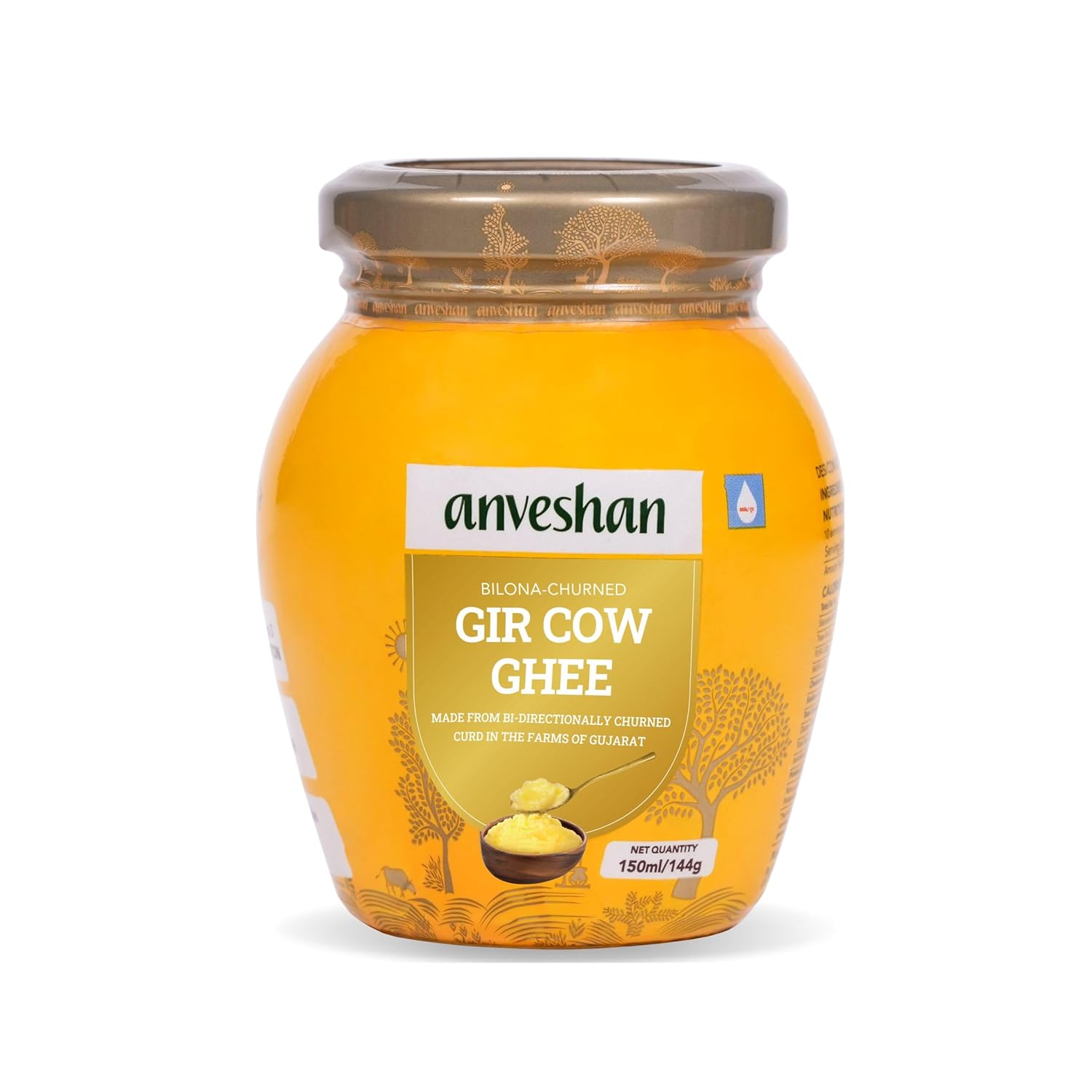 Natural Premium Bilona-Churned Gir Cow Ghee By Anveshan | High In Vitamins A, D & Healthy Bilona Method Desi Ghee Good For Bones Health | (150ml) 5.0 Ounce | Jar Pack