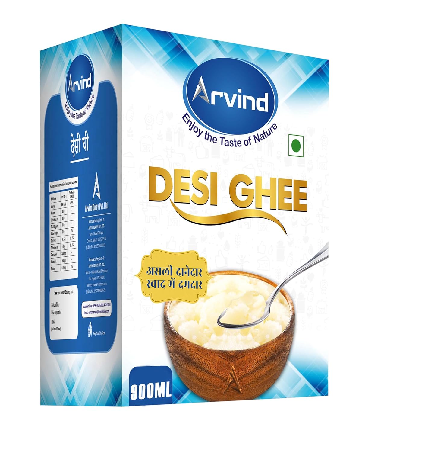 Natural Premium Desi Ghee By Arvind | Rich Aroma For Better Digestion & Immunity Pure Desi Ghee Good For Sweets | (1 Litr) 33.8 Ounce | Box Pack