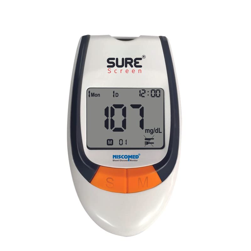 Niscomed Surescreen Glucose Blood Sugar testing Painfree Monitor with 75 Strips Glucometer (White)