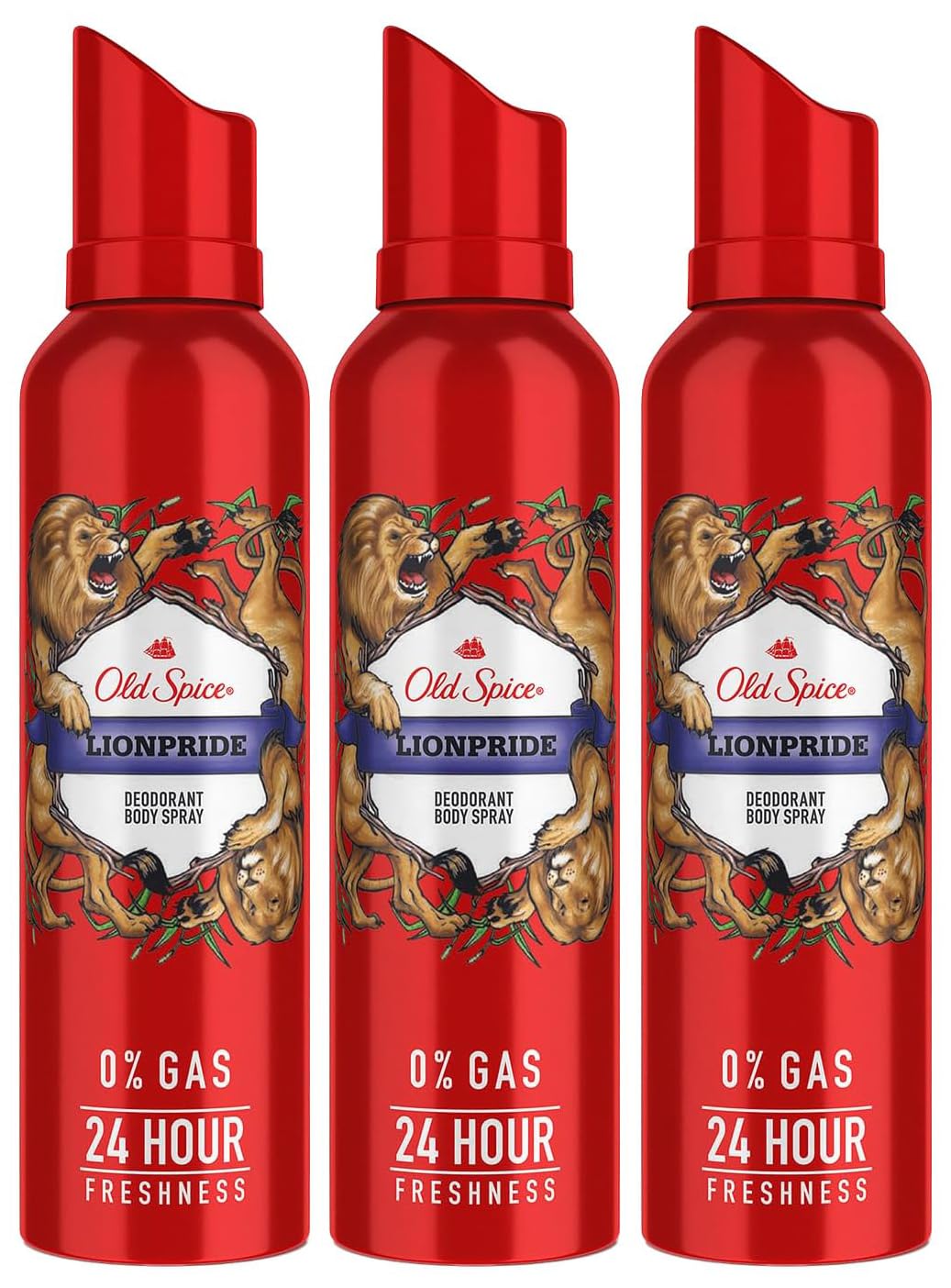 Old Spice Combo Of 3 Lionpride No Gas Deodorant Body Spray Perfume For Men 140ml Each 4.7 Fl.oz.