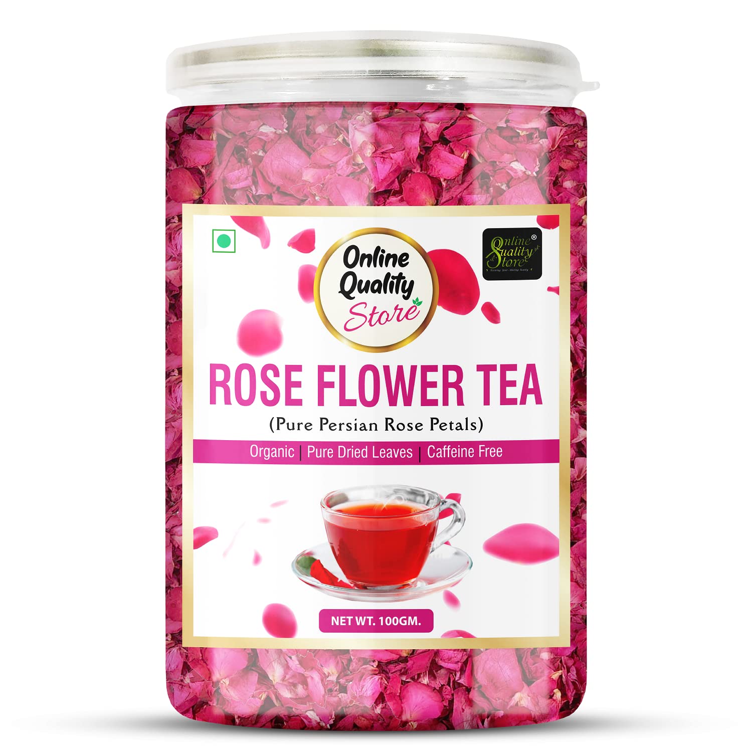 Online Quality Store Rose Flower Tea - 100gm, 3.5 Ounce | Pure Persian Rose Petals - Use For Iced Tea, Cocktails | Organic Pure Dried Leaves Herbal Tea - Caffeine Free