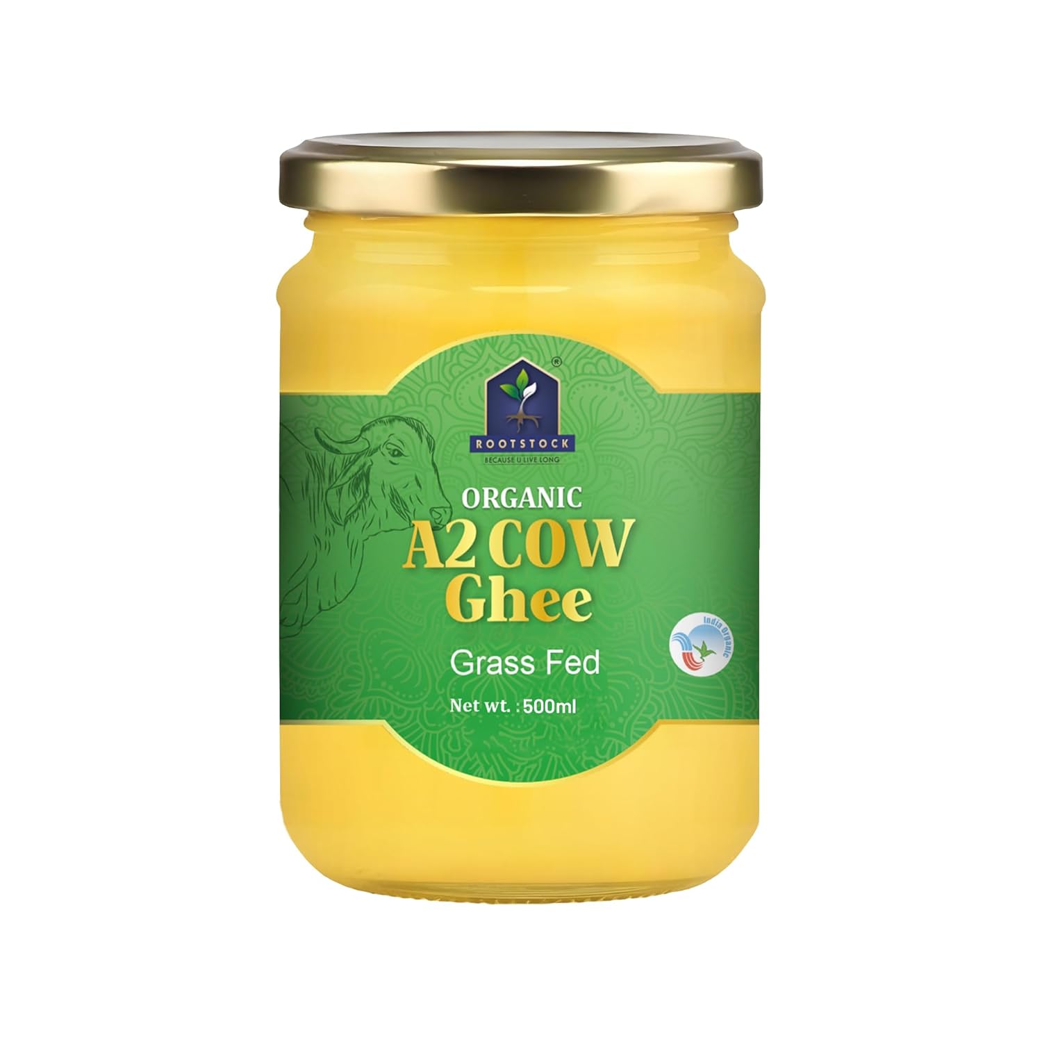 Organic A2 Cow Ghee By Rootstock Because U Live Long | Rich In Nutrients Churned From Vedia Bilona Method Grass-Fed Homemade Cow Ghee | (500ml) 16.9 Ounce | Jar Pack
