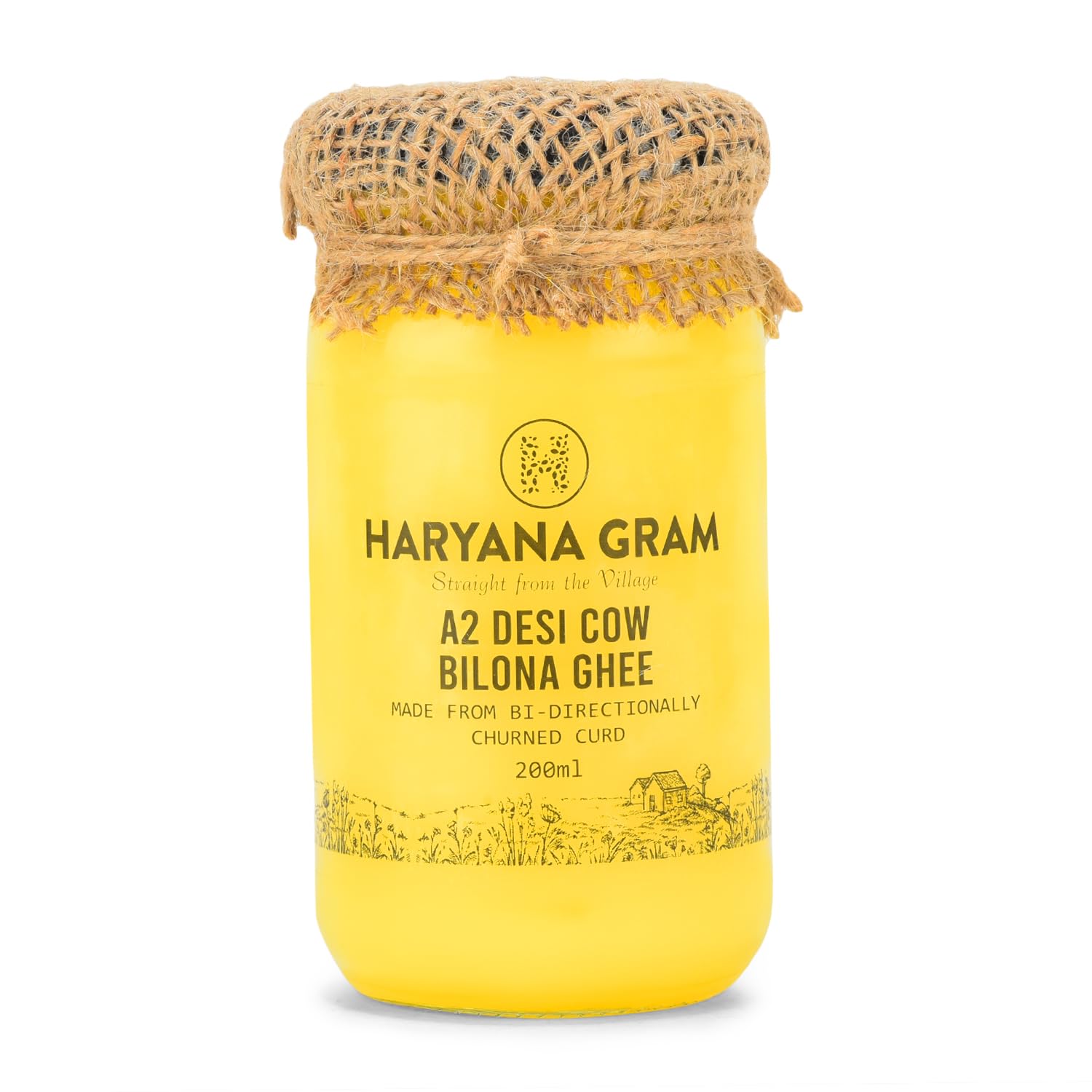 Organic A2 Desi Cow Bilona Ghee By Haryana Gram | Rich In Vitamin A, D & Minerals Healthy Desi Ghee Good For Overall Health | (200ml) 6.7 Ounce | Jar Pack