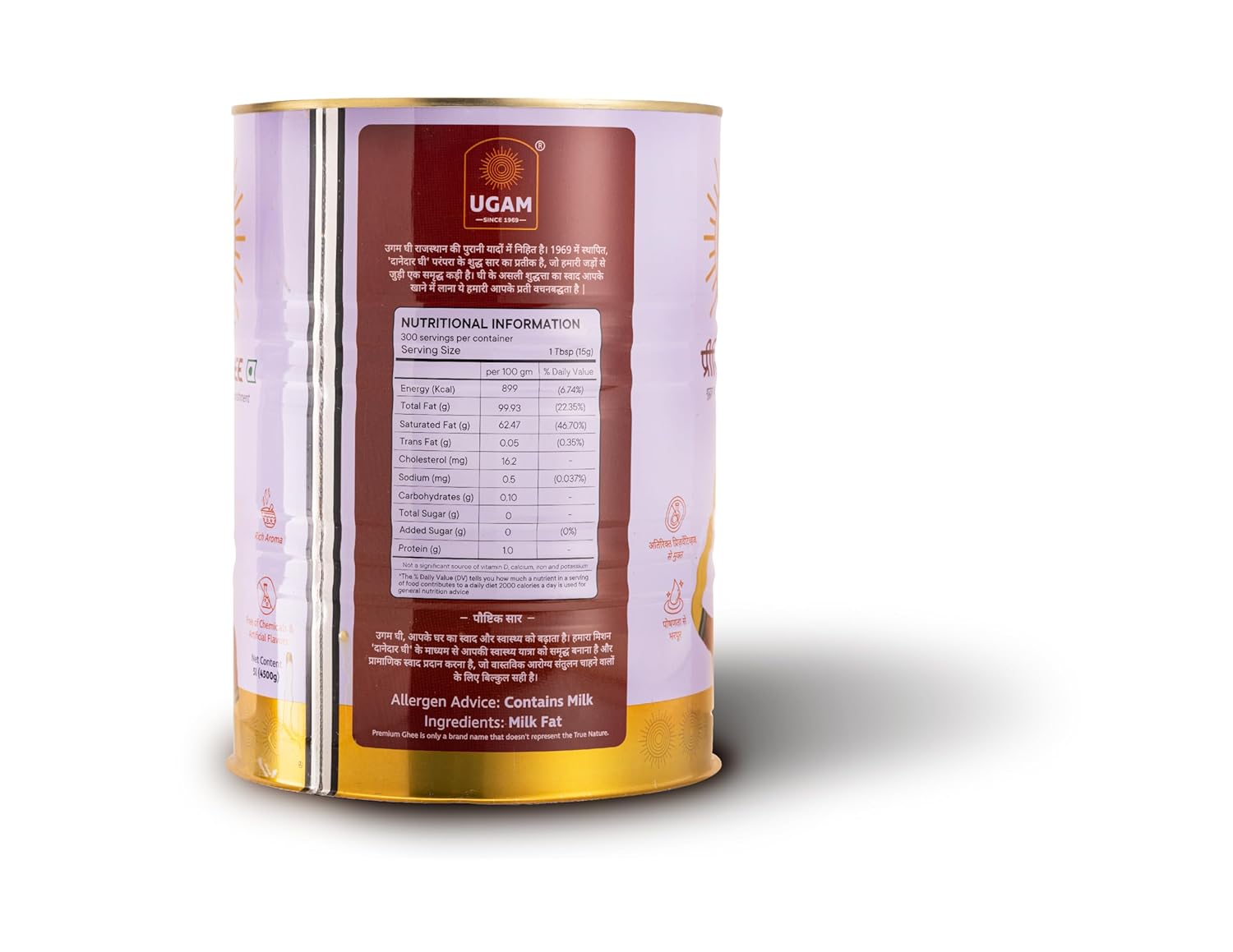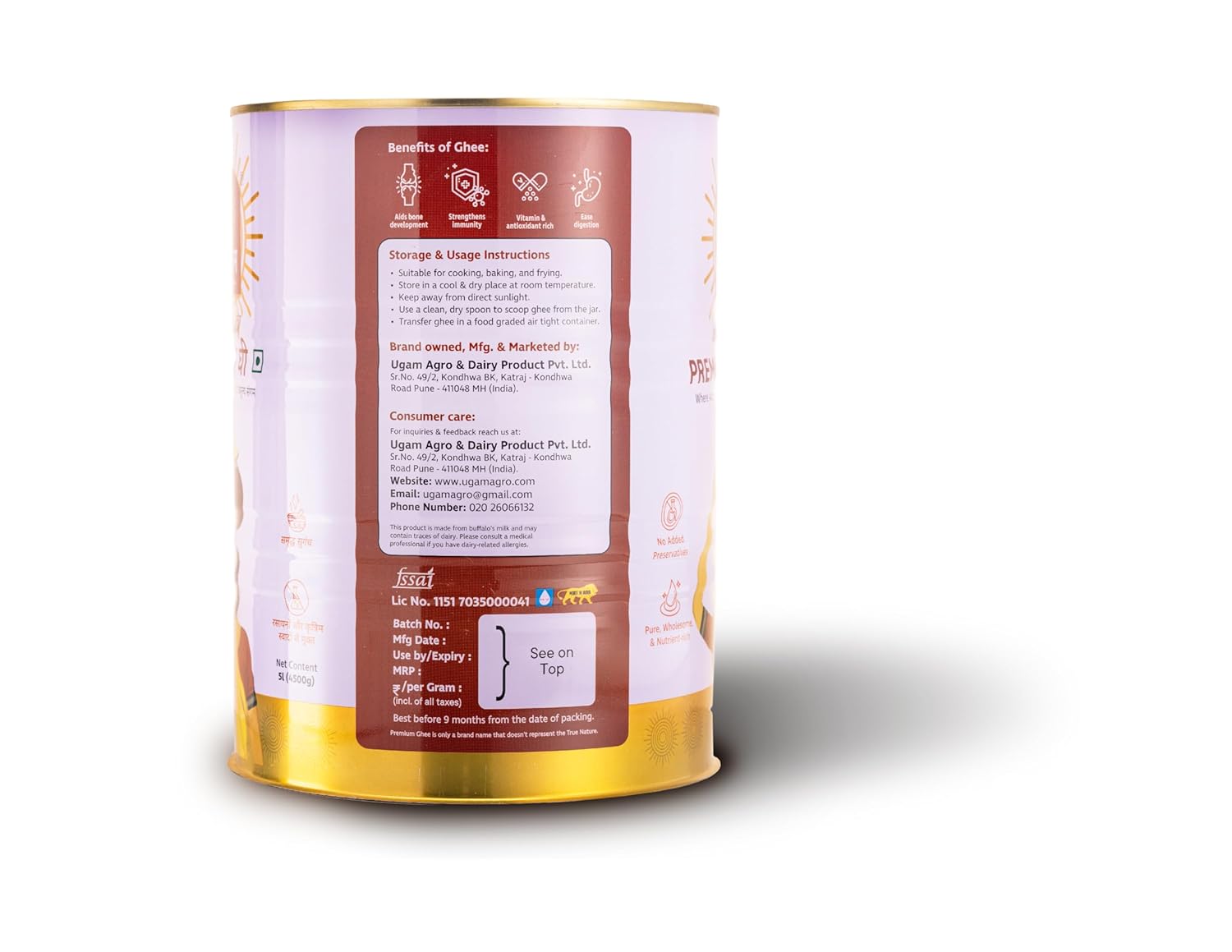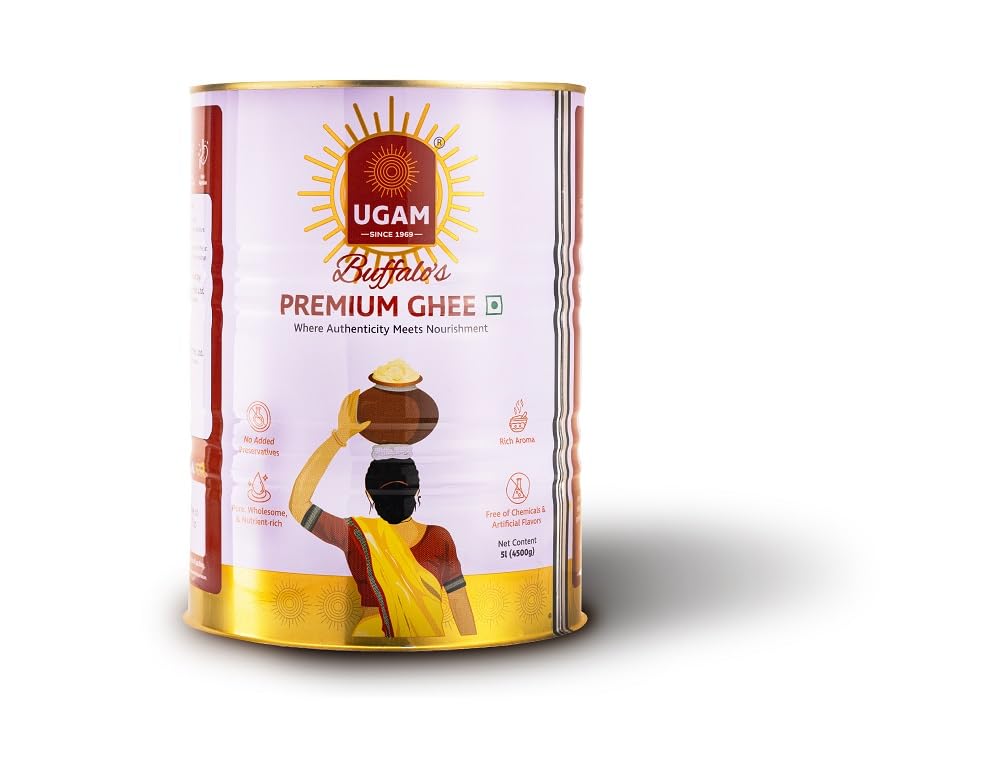 Organic Buffalo'S Ghee By Ugam | Great Source Of Energy & Vitamin Healthy Danedar Desi Ghee Perfect For Garnish Dishes | (5 Litr) 169.0 Ounce | Tin Pack