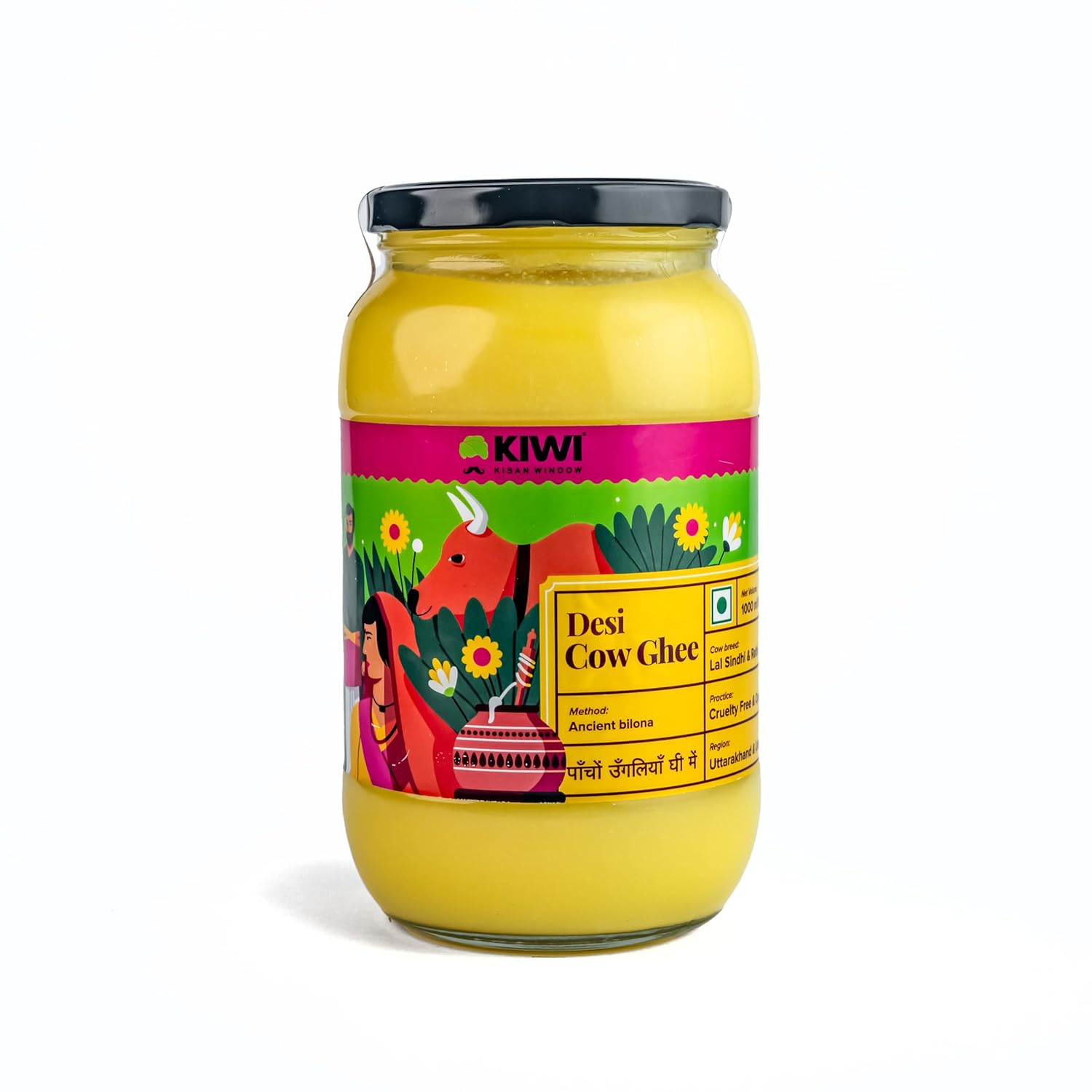 Organic Cow Desi Ghee By Kiwi Kisan Window | Authentic Bilona Method Cow Desi Ghee Good For Immunity & Strong Bones | (1 Litr) 33.8 Ounce | Jar Pack