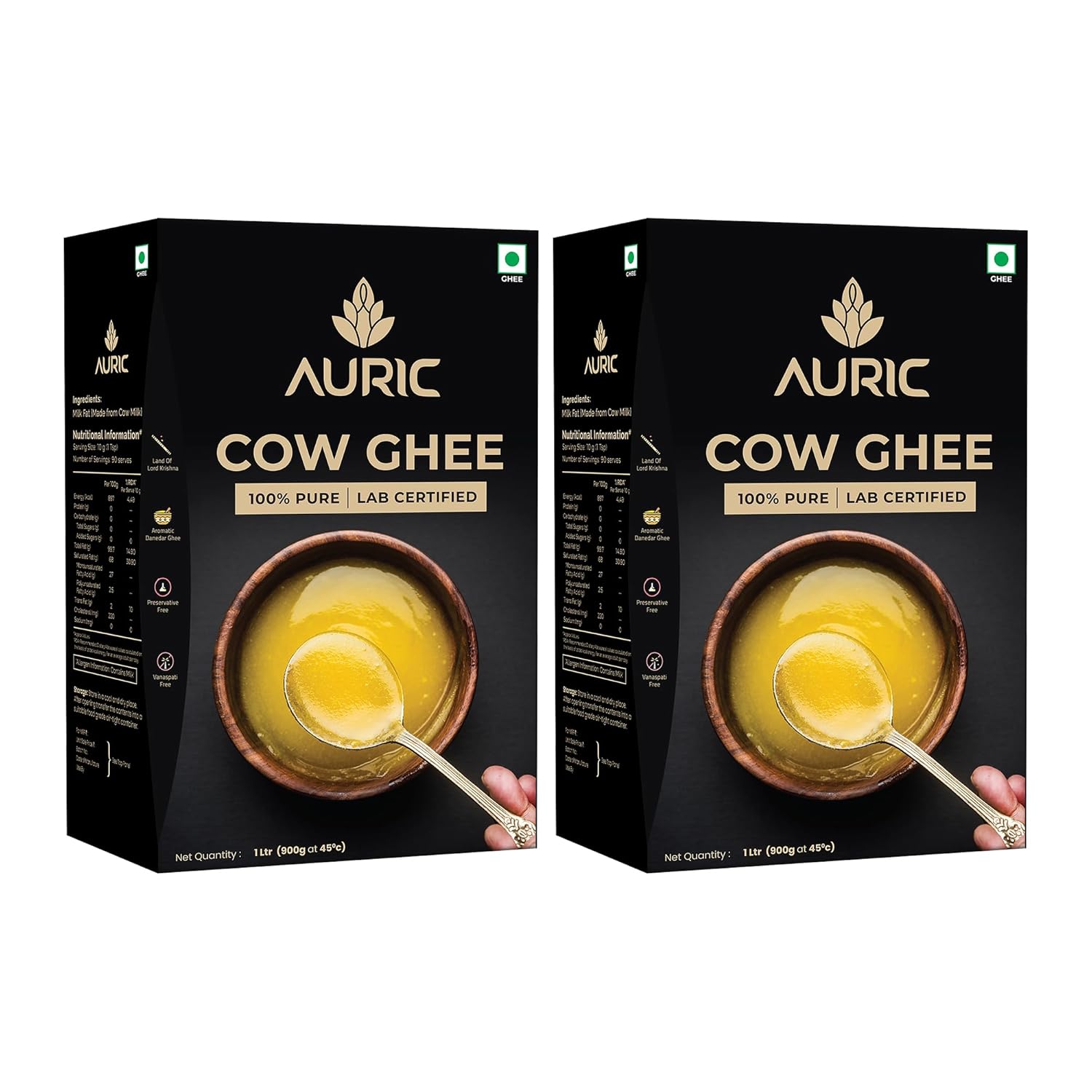 Organic Cow Ghee By Auric | Healthy & Delicious Nutrients Lab Certified Desi Ghee Protact Eyesight | 2 Litr (1 Litr * 2) 67.6 Ounce | Box Pack