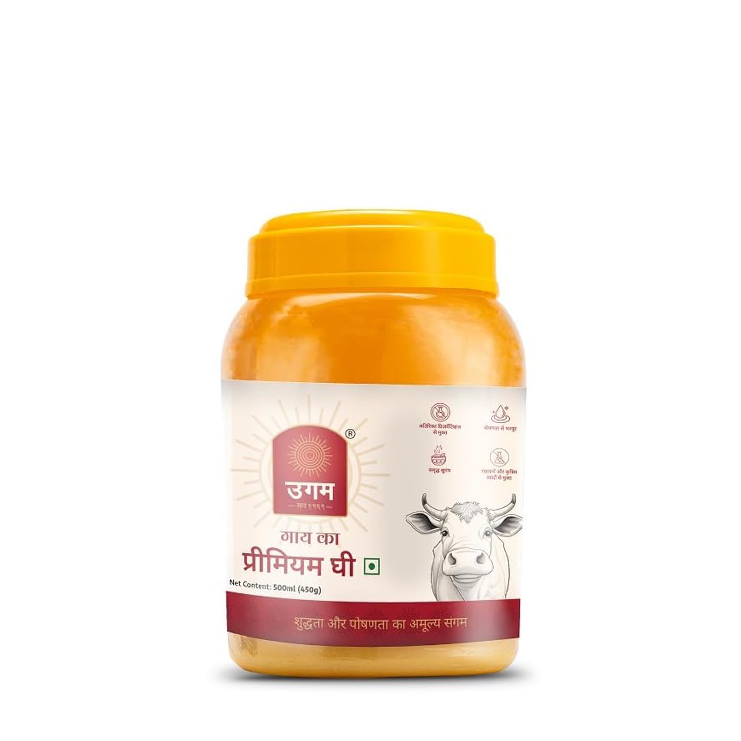 Organic Cow'S Desi Ghee By Ugam | Great Source Of Energy & Vitamin Healthy Desi Ghee Perfect For Body Joint Pain | (500ml) 16.9 Ounce | Jar Pack