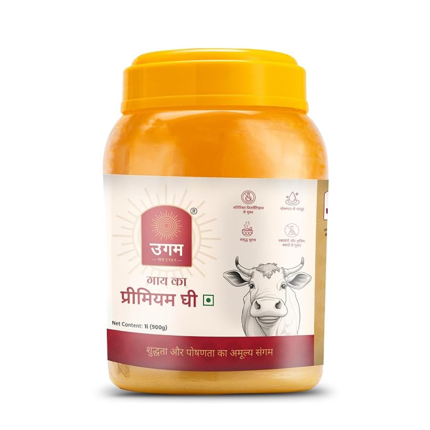 Organic Cow'S Desi Ghee By Ugam | Great Source Of Energy & Vitamin Healthy Desi Ghee Perfect For Daily Health | (1 Litr) 33.8 Ounce | Jar Pack