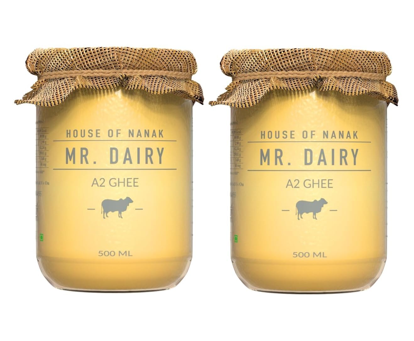 Organic Natural A2 Milk Sahiwal Cow Ghee By Mr. Dairy | Rich In Vitamin A & Healthy Nutrients Desi Ghee Perfect For Taste | 1 Litre (500ml * 2) 33.8 Ounce | Jar Pack