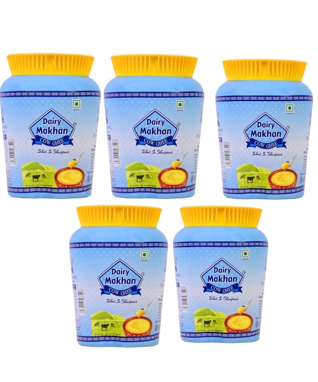Organic Natural Cow Desi Ghee By Dairy Makhan | Good Source Of Vitamins & Minerals Healthy Desi Cow Ghee For Cooking | 5 Litre (1 Litr * 5) 169.0 Ounce | Jar Pack