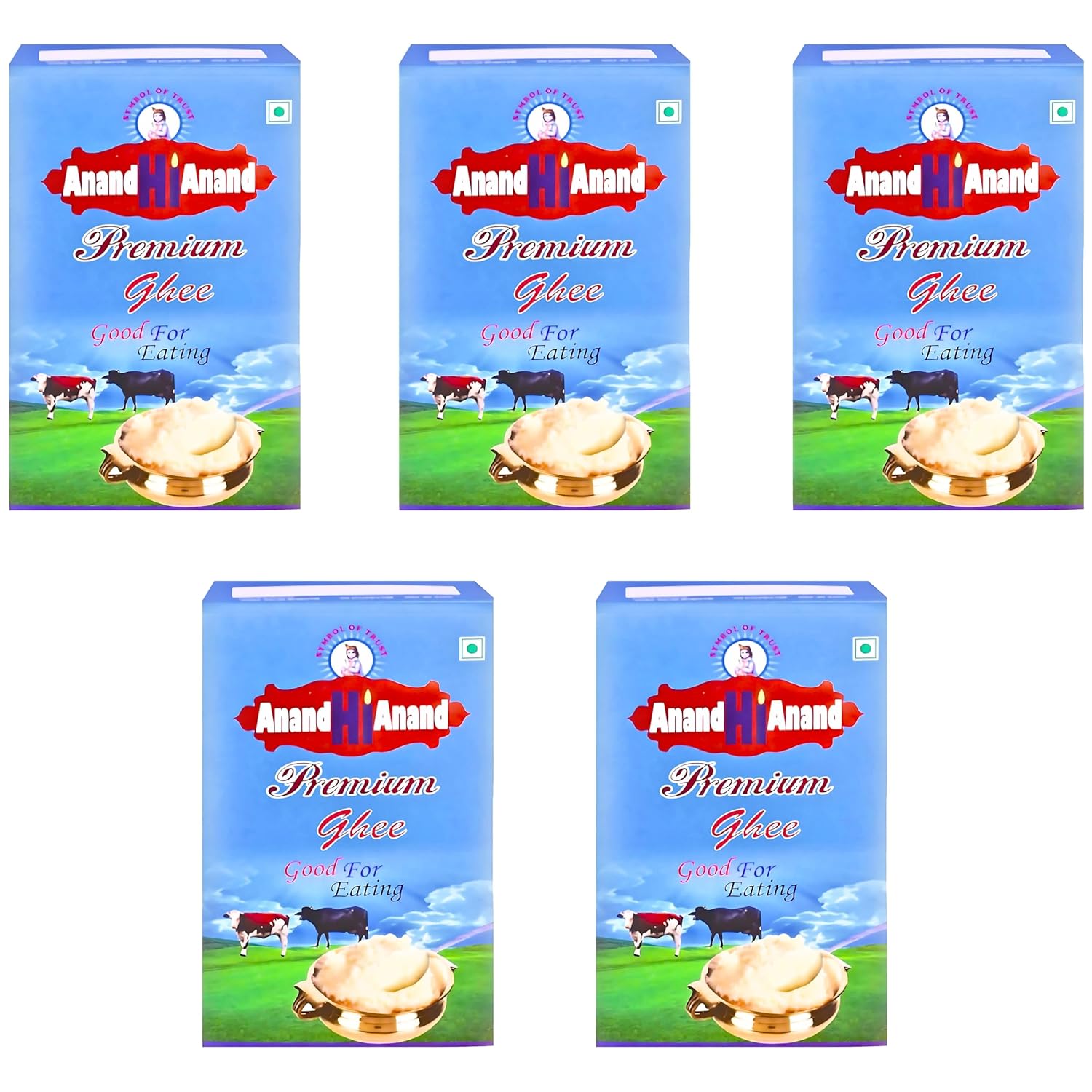 Organic Premium Cow Ghee By Anand Hi Anand | Rich In Nutrients & Vitamins A Healthy Desi Cow Ghee Good For Frying | 2.5 Litre (500ml * 5) 84.5 Ounce | Box Pack