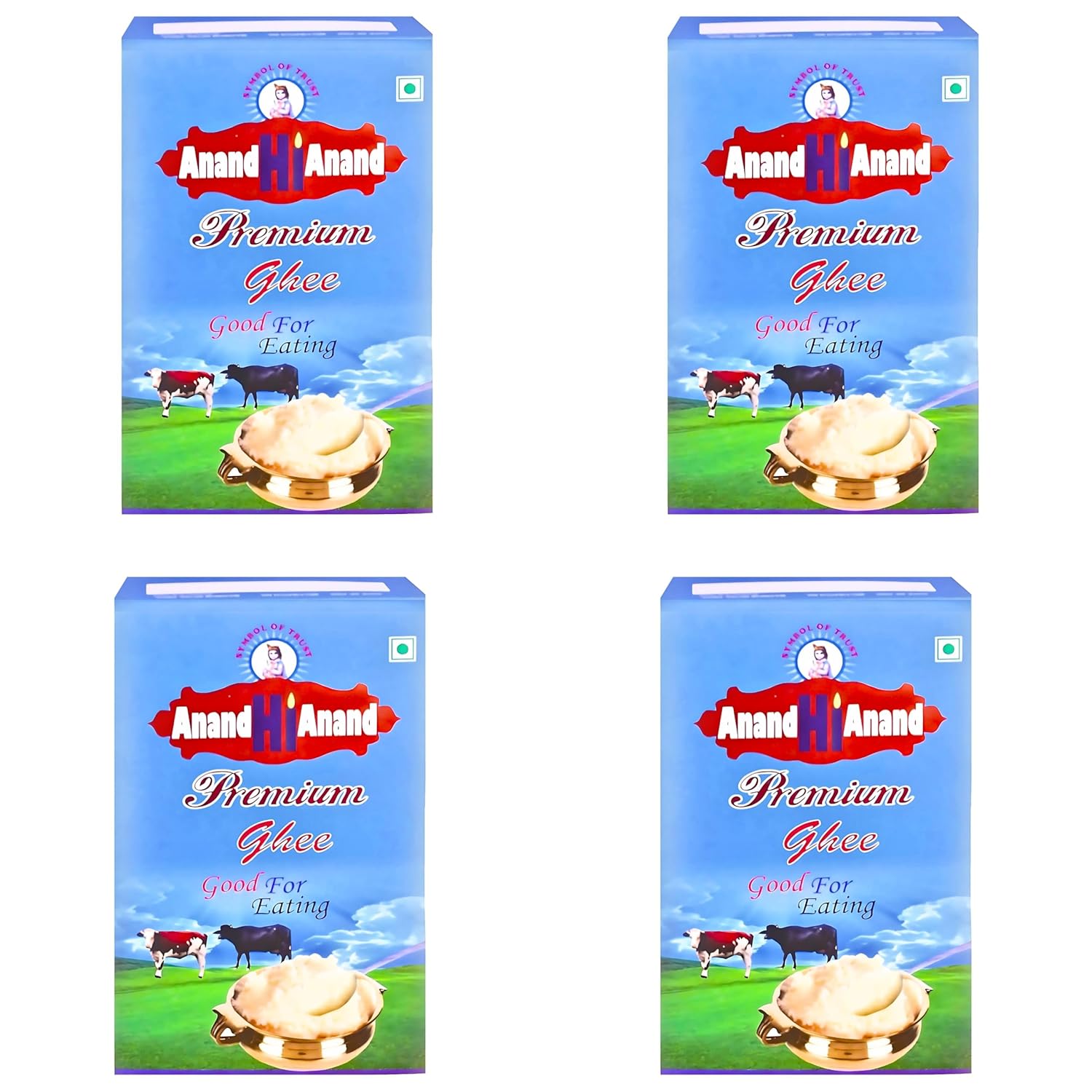 Organic Premium Cow Ghee By Anand Hi Anand | Rich In Nutrients & Vitamins A Healthy Desi Cow Ghee Protact Eyesight | 2 Litre (500ml * 4) 33.8 Ounce | Box Pack