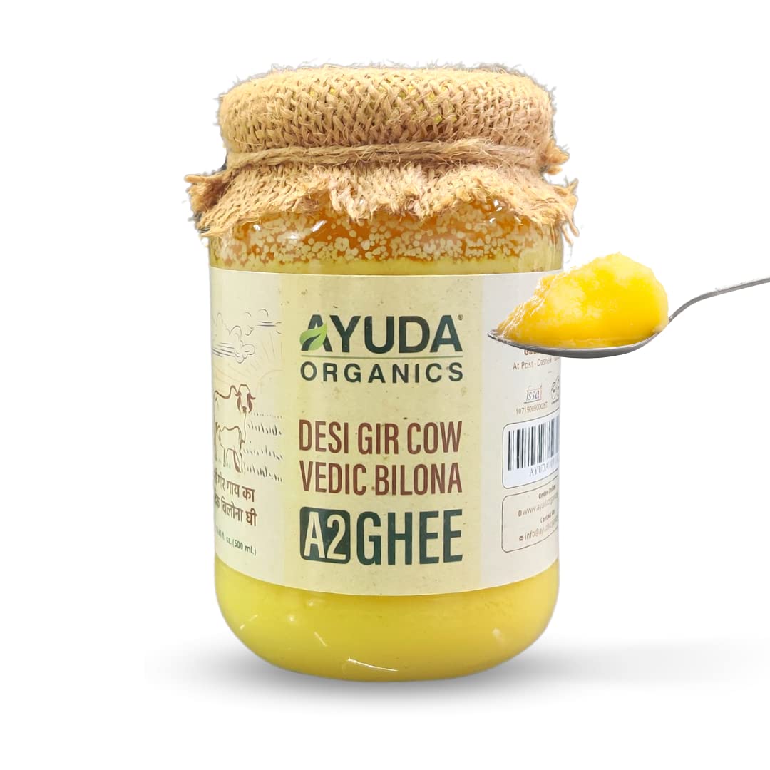 Organic Pure A2 Desi Cow Ghee By Ayuda Organics | Traditional Homemade Curd Churned Healthy Desi Ghee Good For Boost Energy | (500ml) 16.9 Ounce | Jar Pack