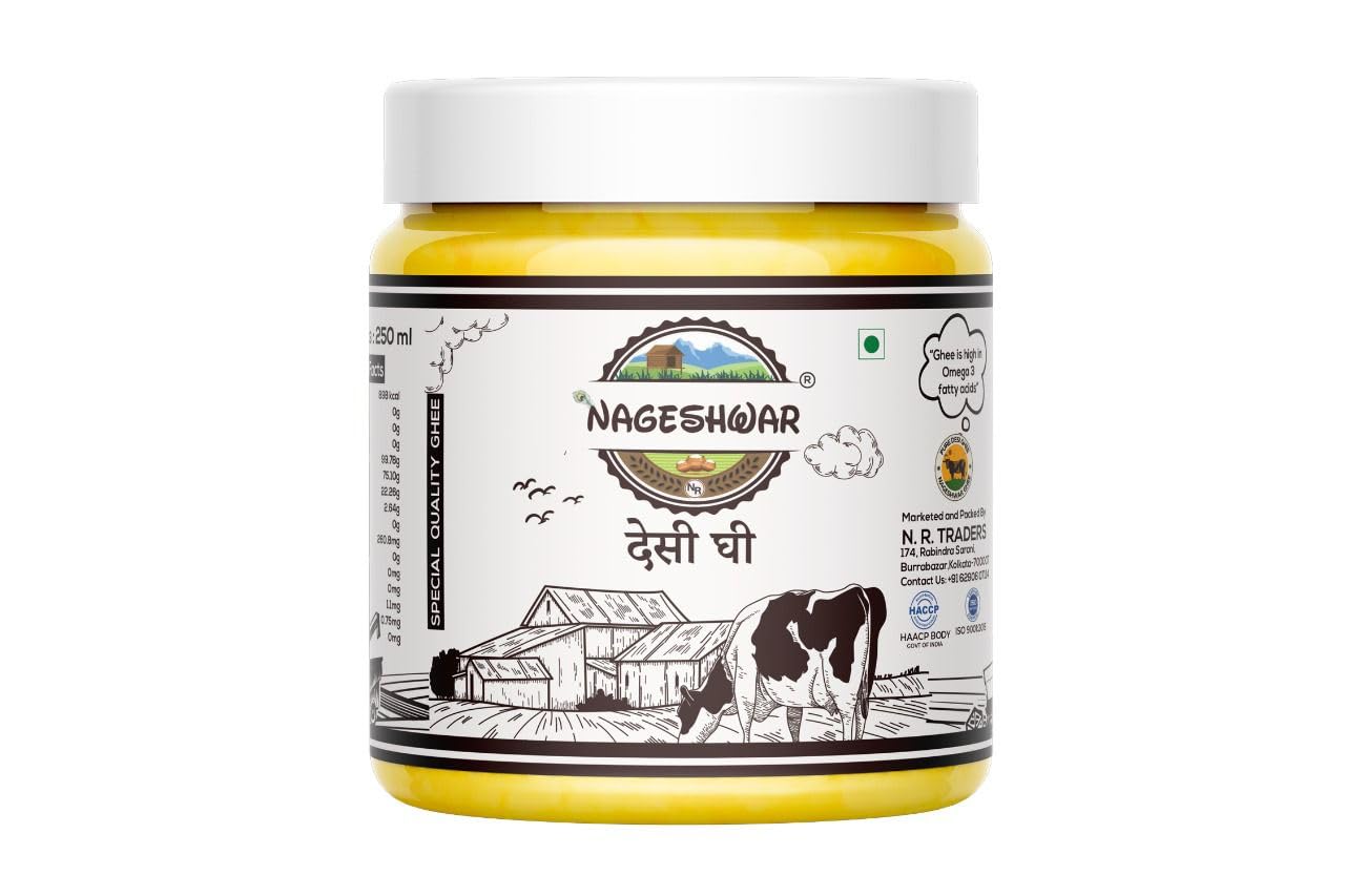 Organic Pure Desi Ghee By Nageshwar | Rich In Protein Fiber Healthy Desi Ghee Good For Strength | (500ml) 16.9 Ounce | Jar Pack