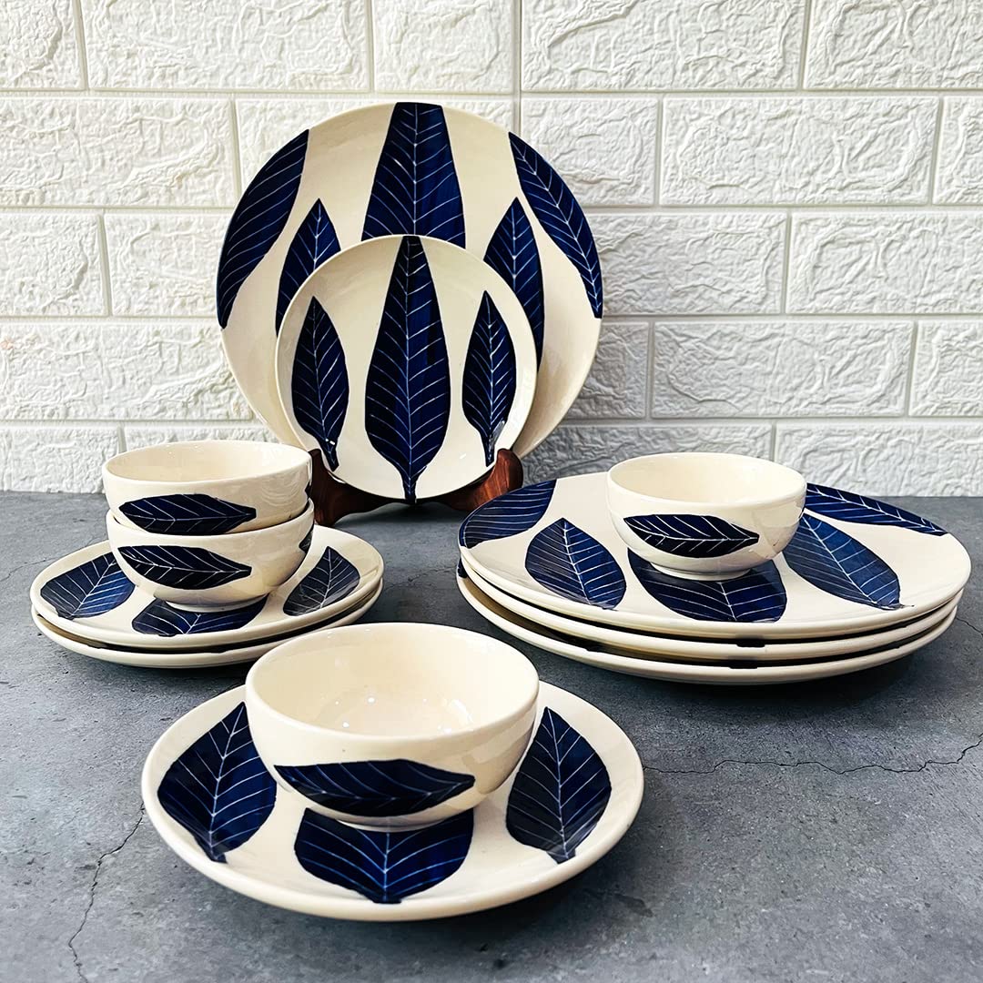 Material: Stoneware Ceramic; Package Content: 4 Dinner Plates, 4 Katori bowls, 4 Quarter Plates