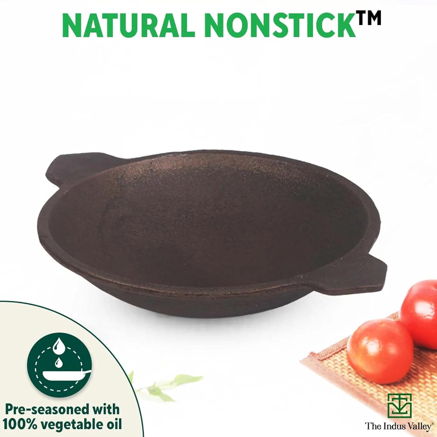 Pre-seasoned Black Cast Iron Appam Pan | 22 Cm, 8.7 Inch, 1.7 Kg | Gas Compatible | Nonstick Appam Pan, 100% Pure & Toxin-free, No Chemical Coating