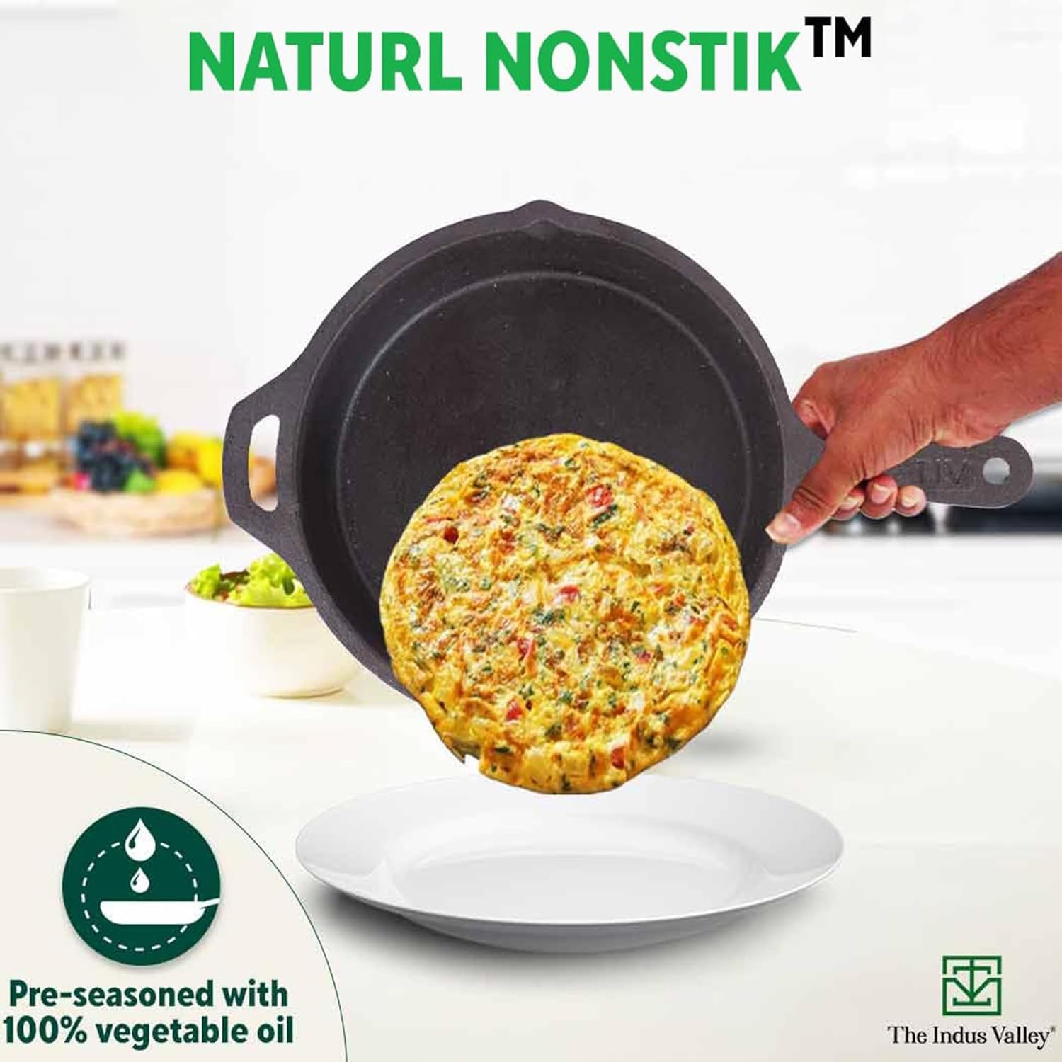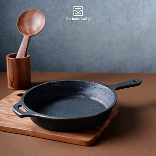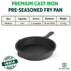 Pre-seasoned Black Cast Iron Fry Pan Or Skillet With Long Handle | Medium, 25cm, 9.8 Inch,1.6 Ltr, 2.4 Kg | Induction Friendly | Nonstick Fish Fry Pan,100% Pure & Toxin Free, No Chemical Coating