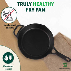 Pre-seasoned Black Cast Iron Fry Pan Or Skillet With Long Handle | Medium 26.2cm, 10.3 Inch, 1.8 Ltr, 2.3 Kg | Induction Friendly | Nonstick Fry Pan, 100% Pure & Toxin Free, No Chemical Coating