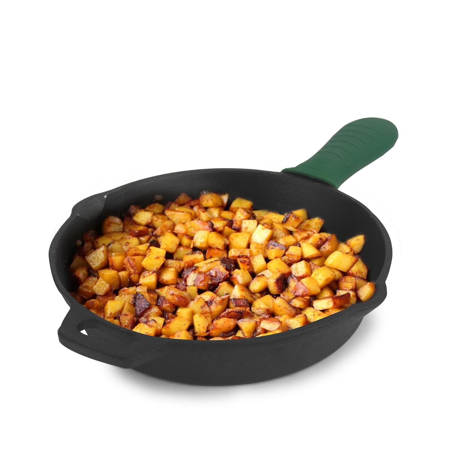 Pre-seasoned Black Cast Iron Fry Pan Or Skillet With Silicone Grip | Medium 25cm, 10 Inch, 1.6 Ltr, 2.4 Kg | Induction Friendly | Nonstick Fry Pan, 100% Pure & Toxin Free, No Chemical Coating