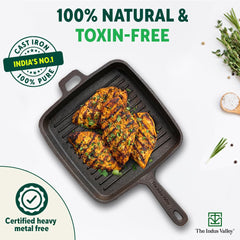 HEALTHY - Cast iron Grill Pan are the best when compared to other chemical coated non-stick Grill Pan's. They add iron to the food that makes food even healthier. They can last longer with proper seasoning and care. Tasty - expect improved taste when cooking in cast iron Grill Pan. Chicken & Veggies taste much better in cast iron Grill Pan compared to other vessels.
